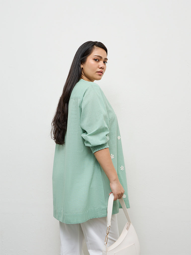 Diza Turquoise Embroidered Cotton Tunic