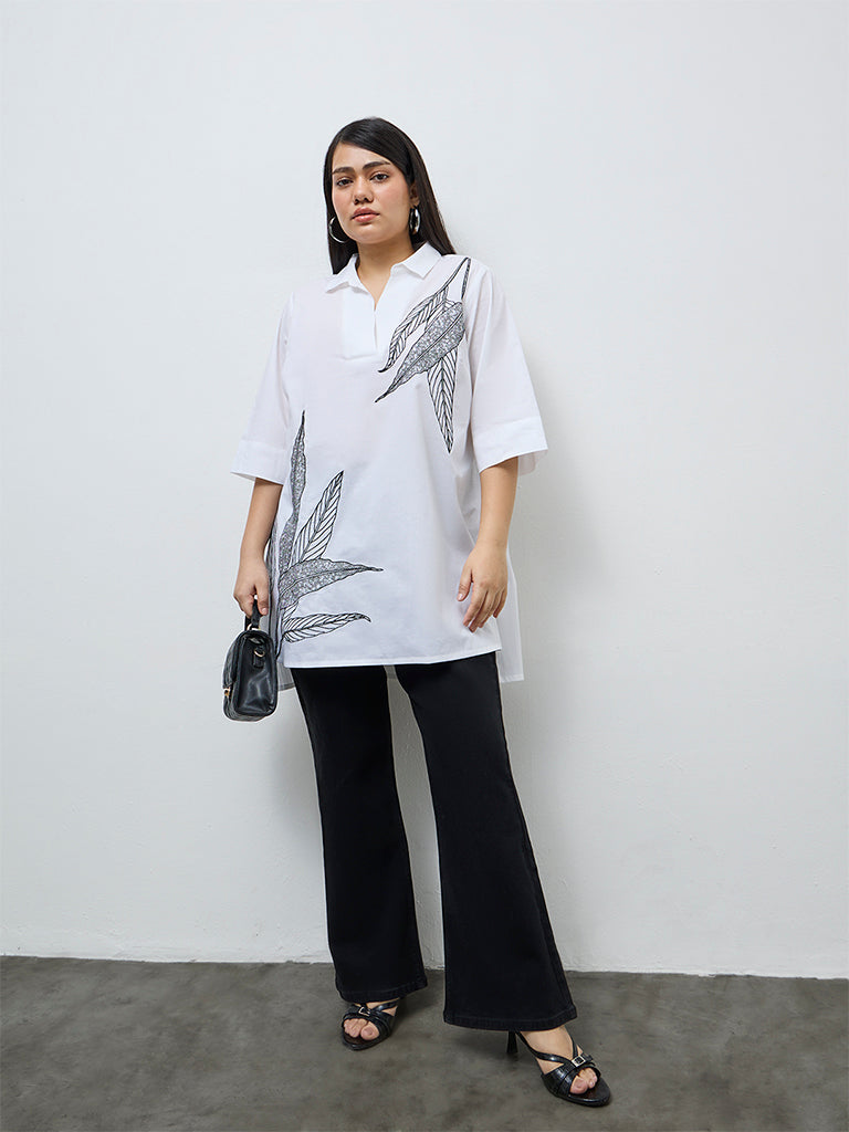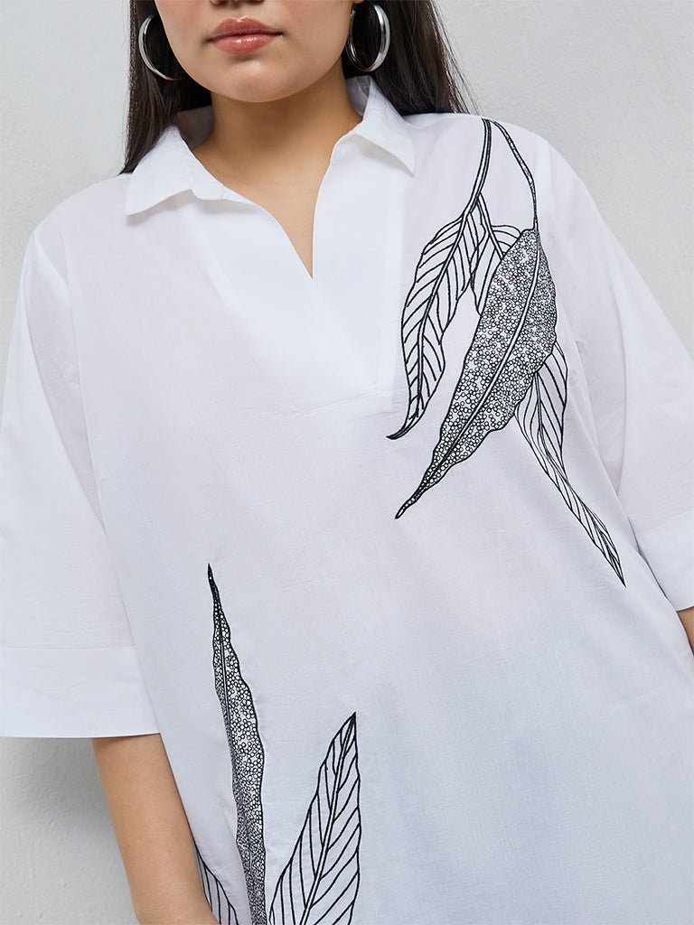 Diza White Leaf Embroidered Cotton Tunic