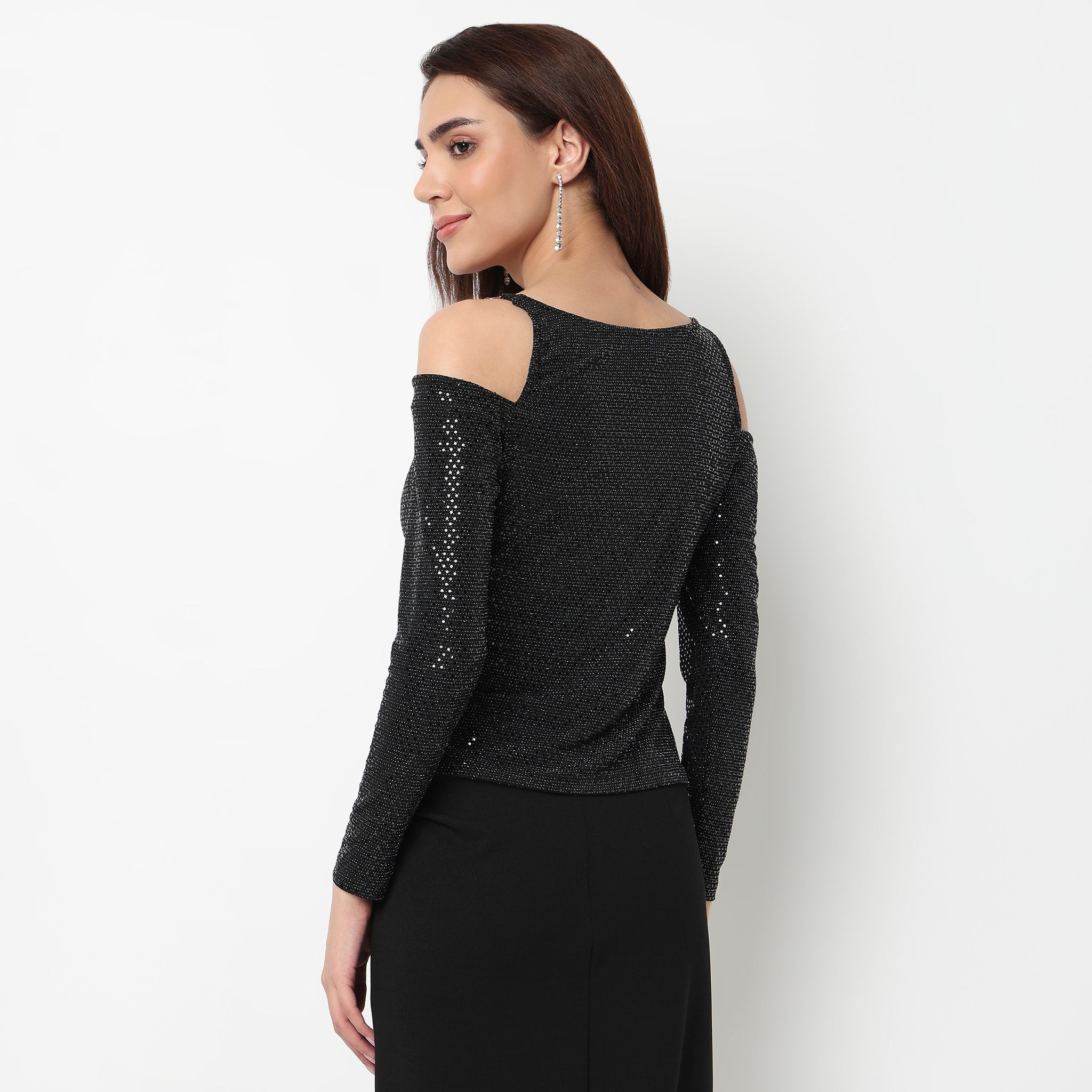 Style this top with sleek trousers and statement heels for a glamorous party-ready outfit.
