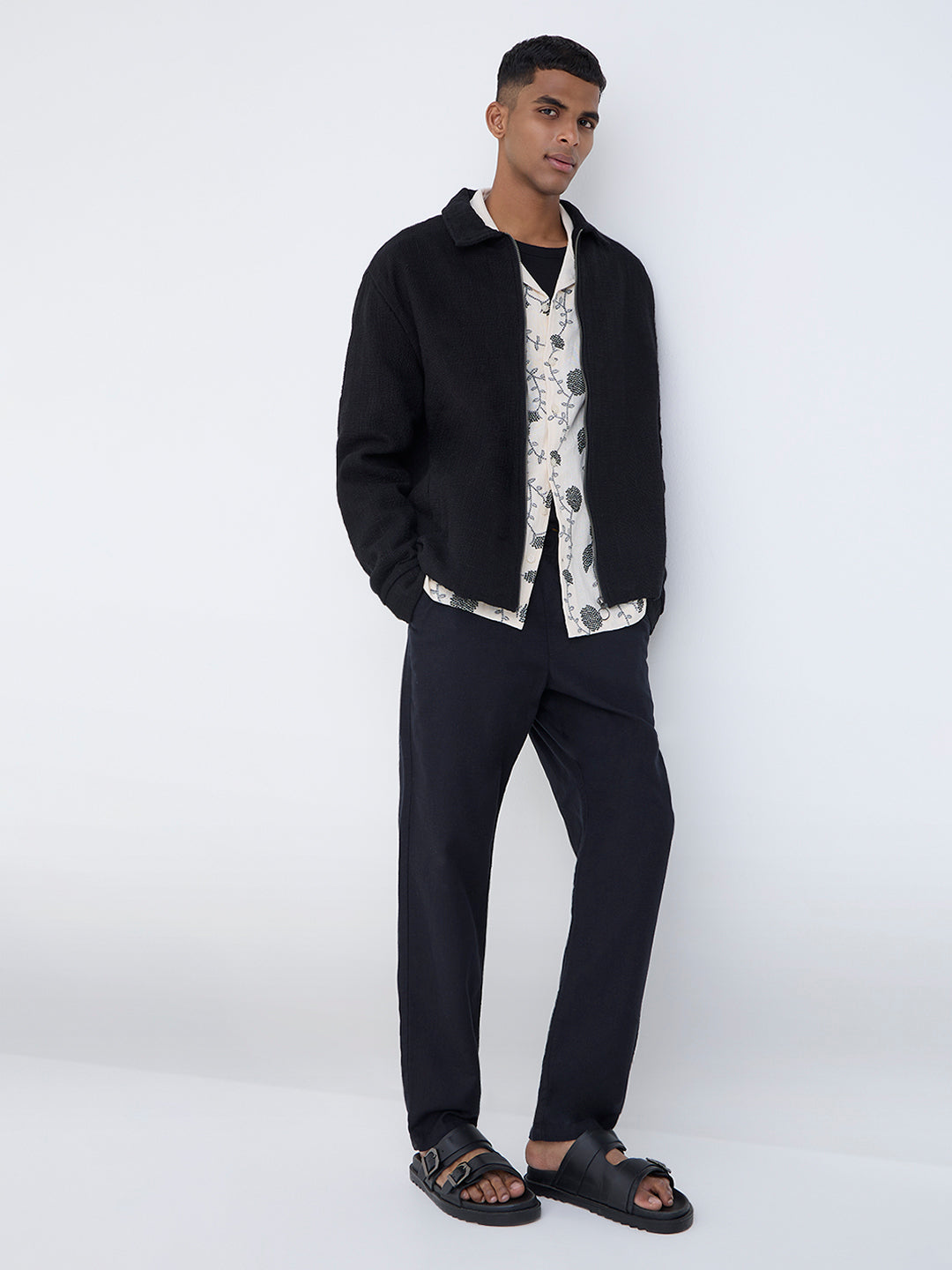 ETA presents a standout layer for everyday routines. This black jacket is shaped in a relaxed frame with a spread collar and long sleeves, completed by a front zip closure that keeps the look streamlined. Crafted from pure cotton for a soft yet structured feel, it is finished with kangaroo pockets for functional ease.