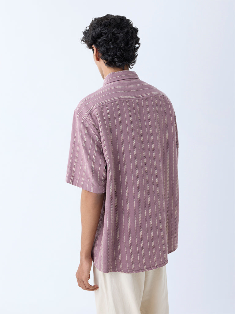 ETA Dusty Pink Stripe Patterned Relaxed-Fit Cotton Shirt