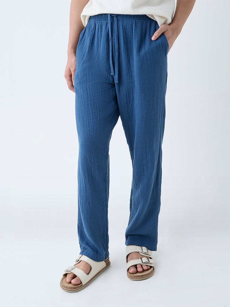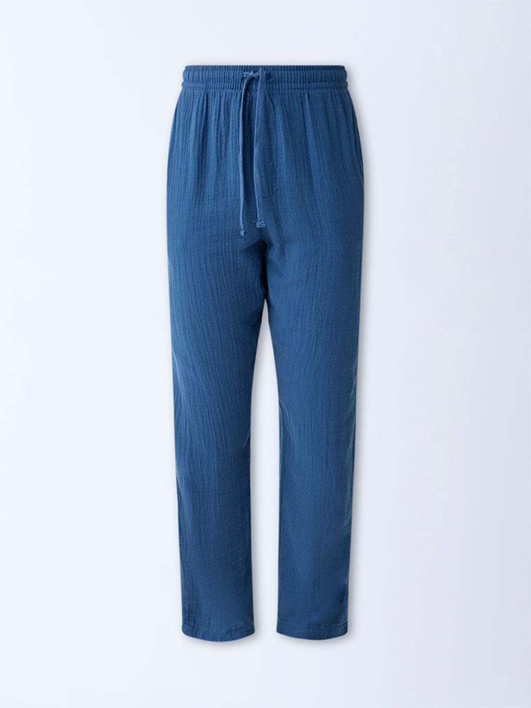 ETA Indigo Textured Relaxed-Fit Mid-Rise Cotton Trousers