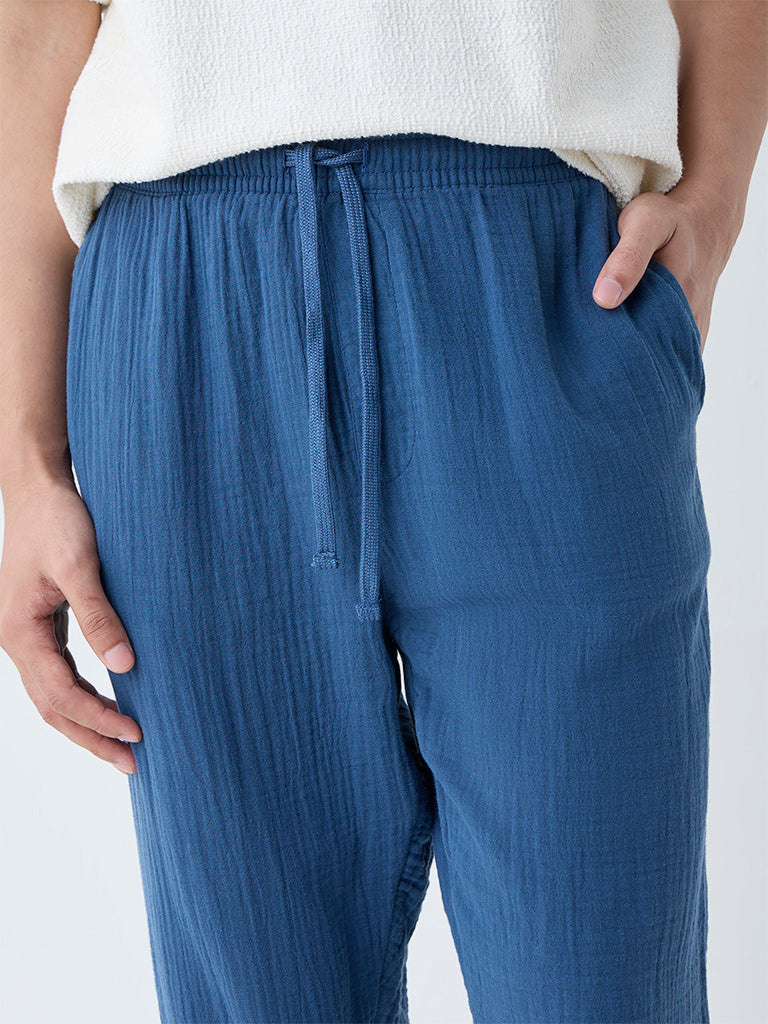 Made for easy days and everyday plans, these indigo trousers from ETA combine comfort with considered style. Spun from pure cotton in a relaxed fit, they feature an elasticated waistband with adjustable drawstrings for a personalised fit. Finished with multiple pockets, they bring practicality to the forefront without compromising on ease.