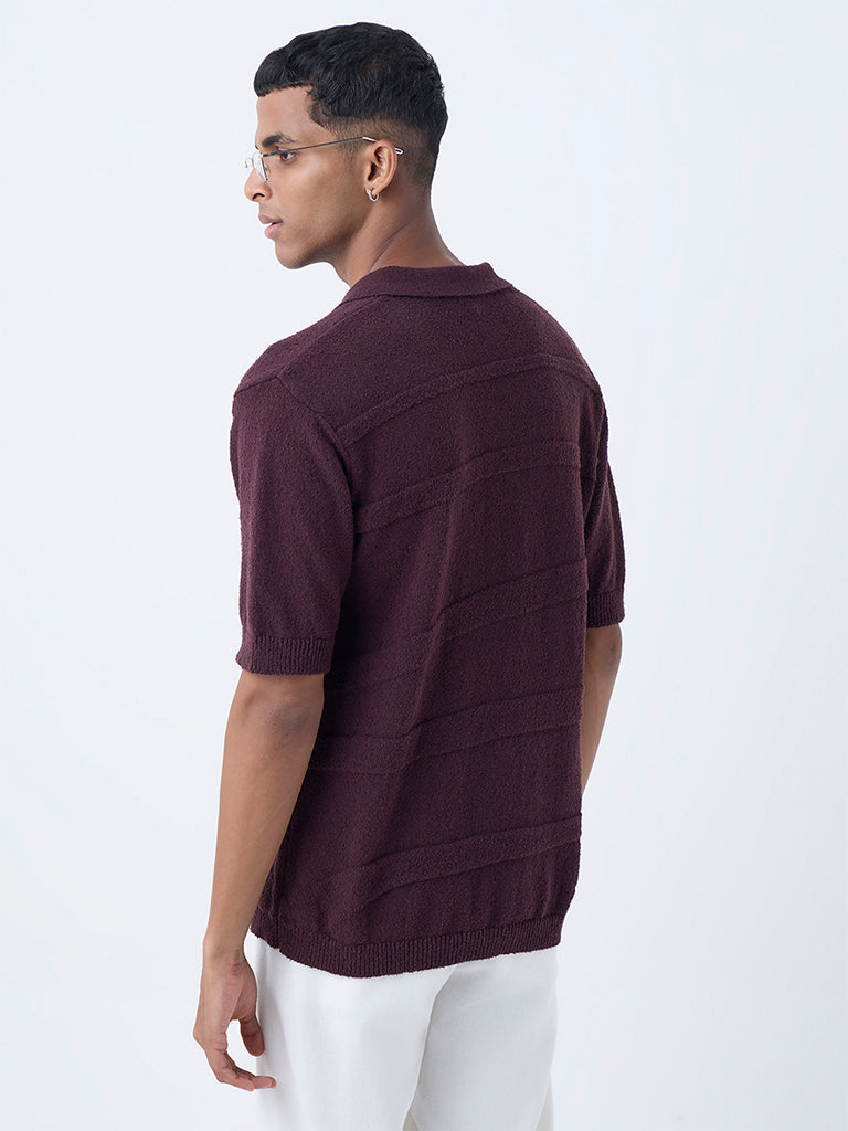 ETA Maroon Self-Striped Relaxed-Fit Cotton Polo T-Shirt