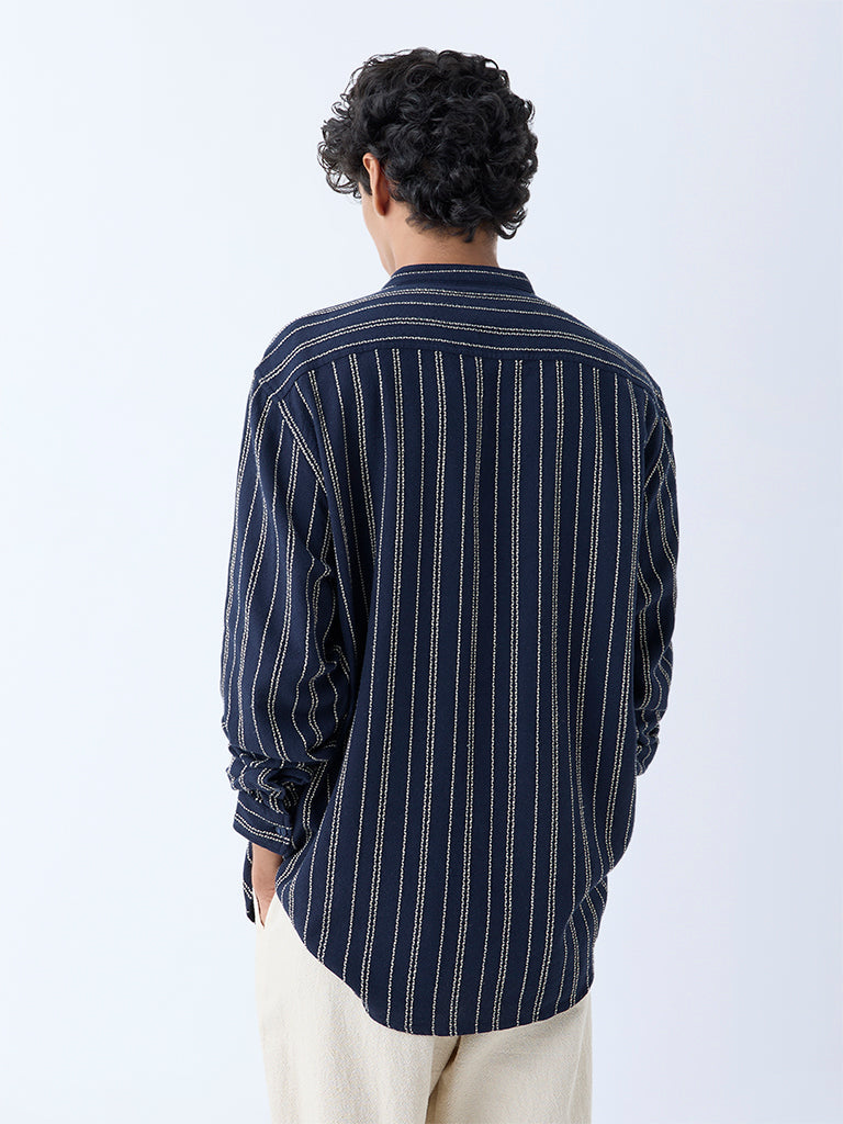 ETA Navy Striped Relaxed-Fit Cotton Shirt