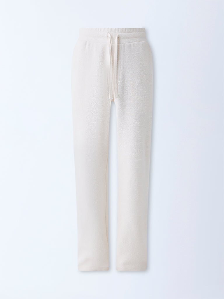 Channel relaxed resort energy with these off-white textured pants from ETA. Made from a soft cotton-blend fabric, they offer a breathable, relaxed fit that moves with ease. The elastic waistband and adjustable drawcords ensure comfort through long flights or lazy afternoons.
