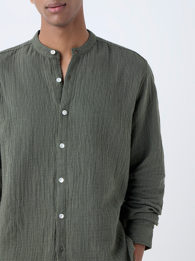 ETA Olive Striped Relaxed-Fit Cotton Shirt