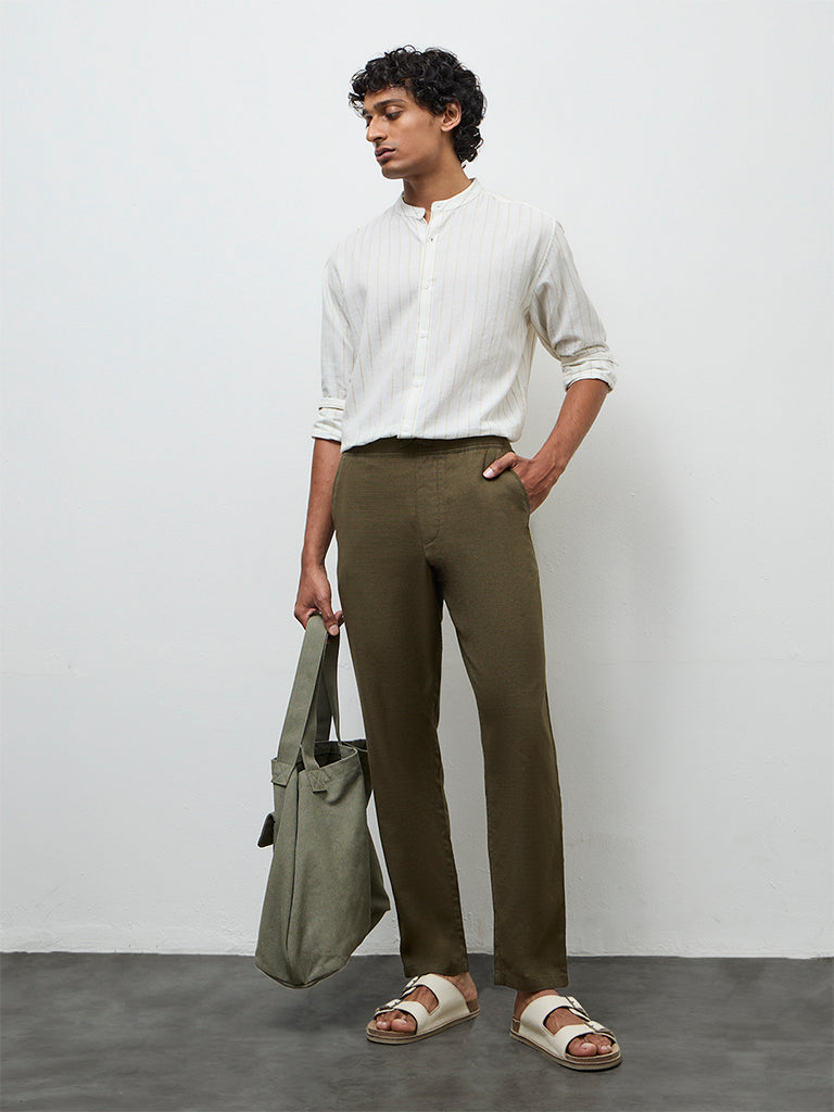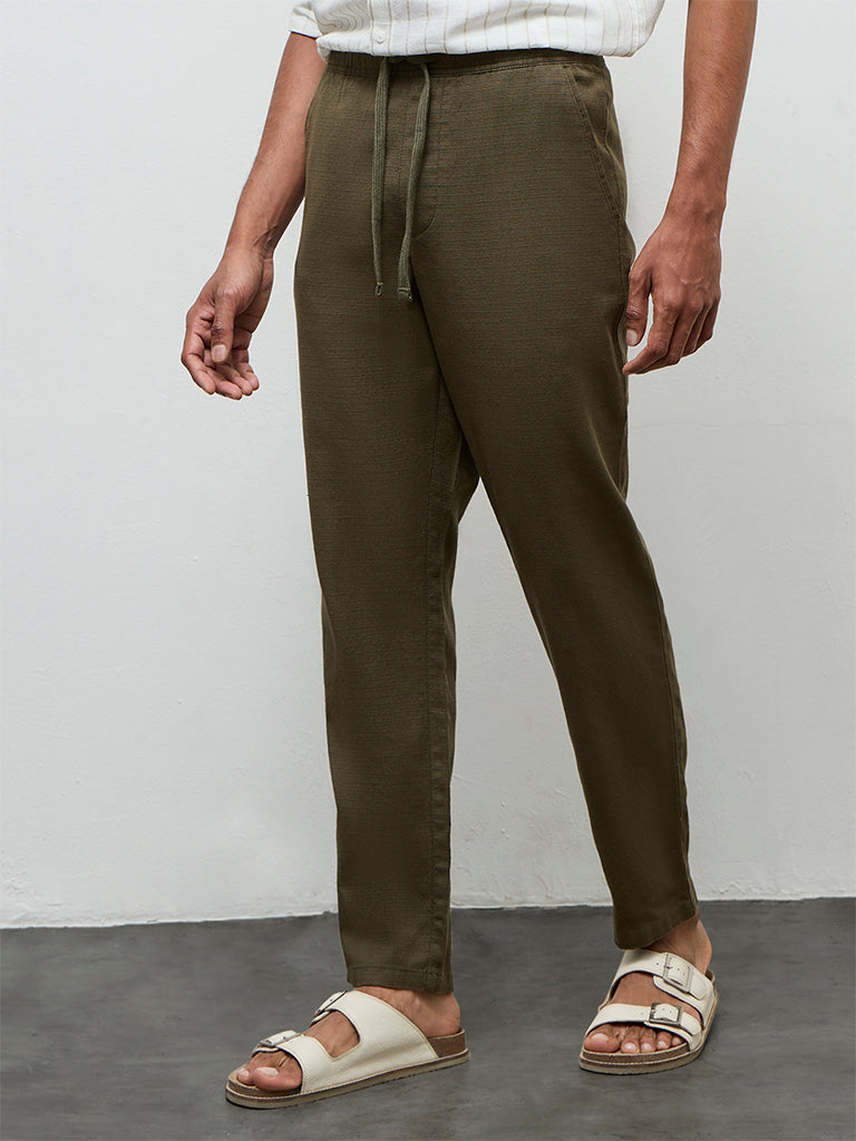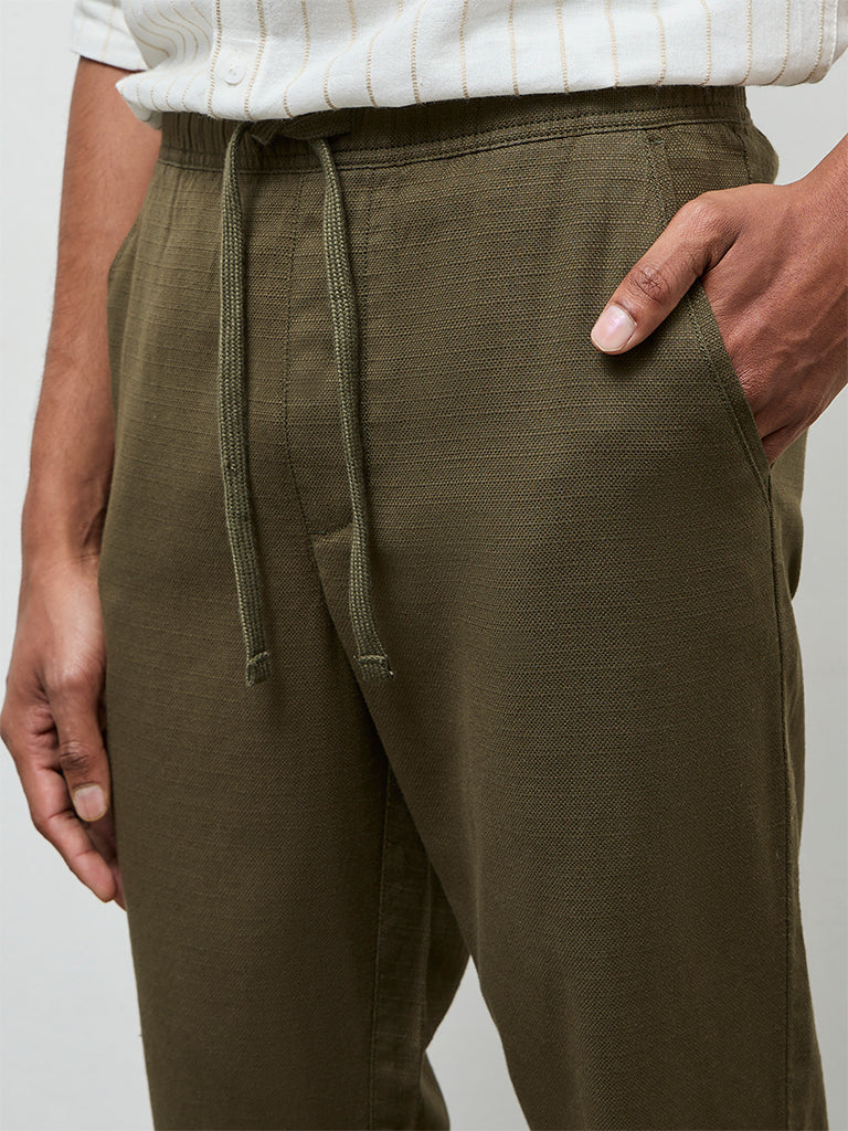 ETA Olive Textured Relaxed-Fit Mid-Rise Cotton Trousers