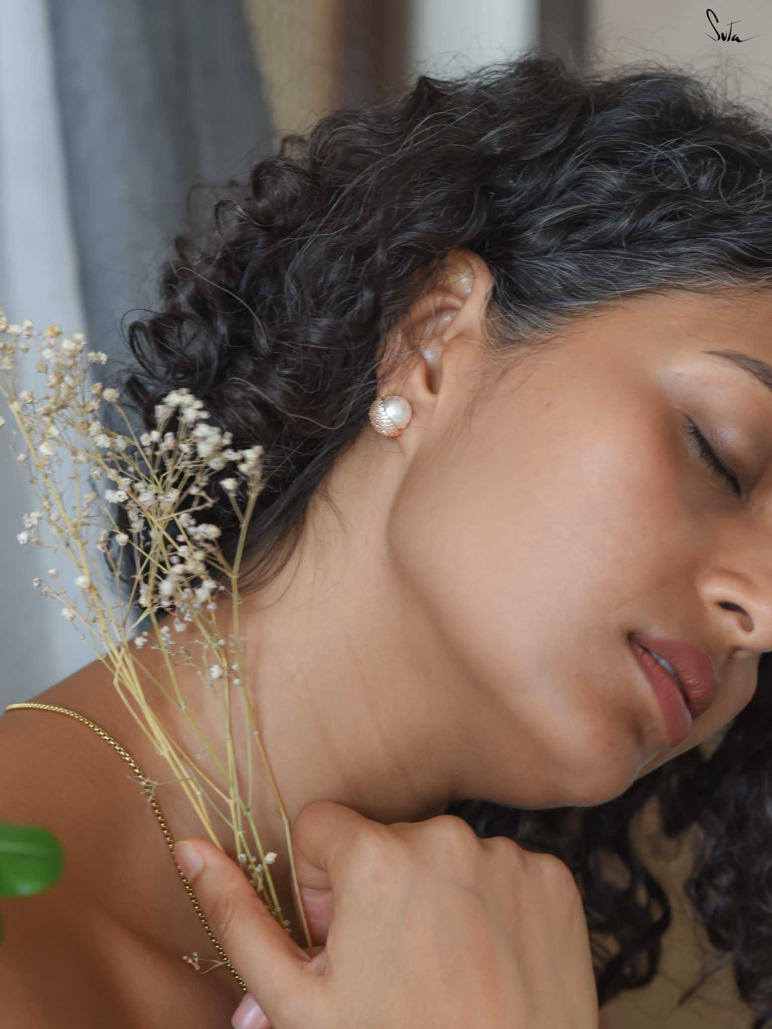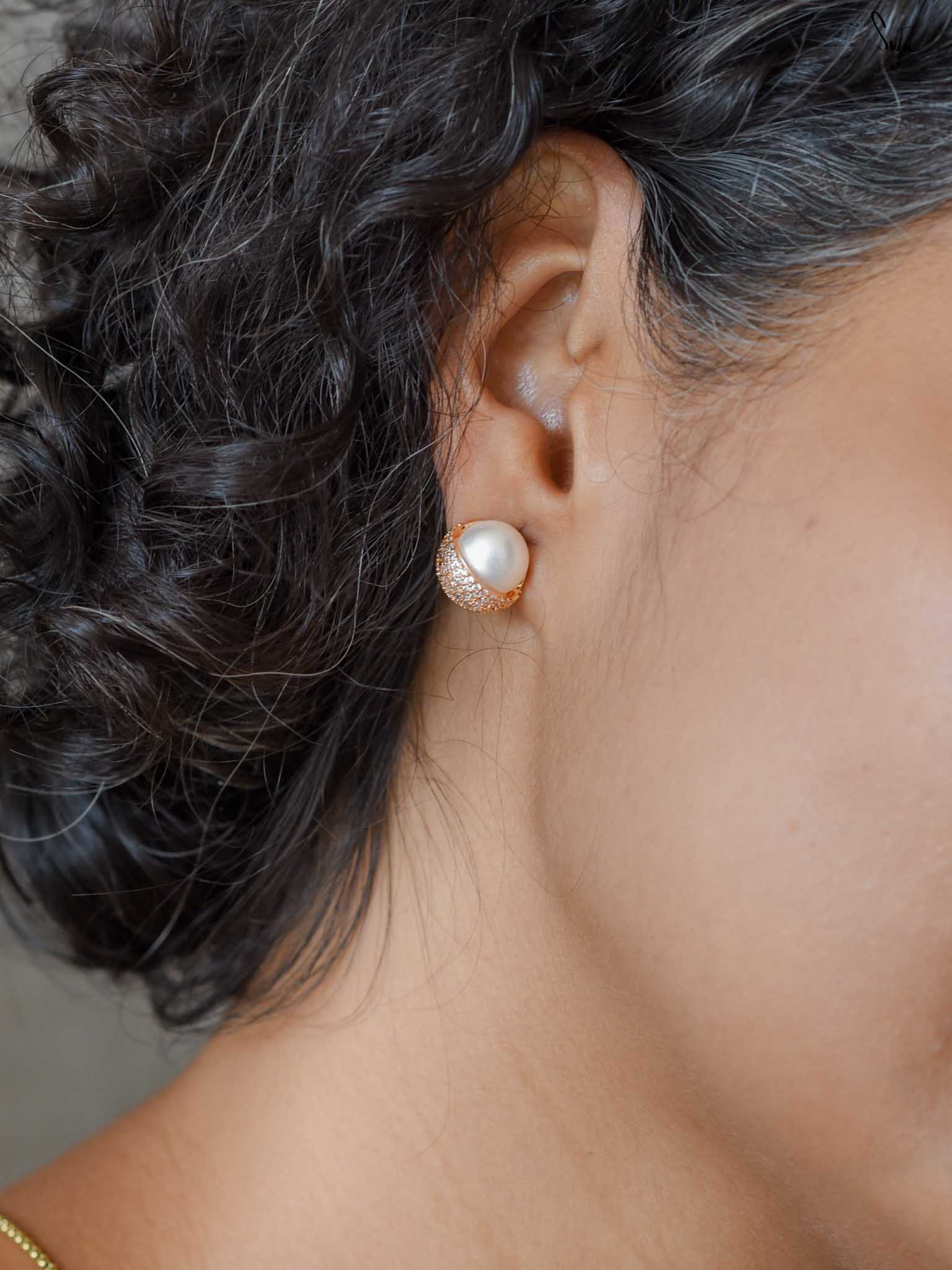 Sterling silver earrings with a micro-gold finish, pearl & AD, screw closure. Love that shows presence in its purest form. Charming, bold, and fully focused. For days when you’re confused about what to wear?
