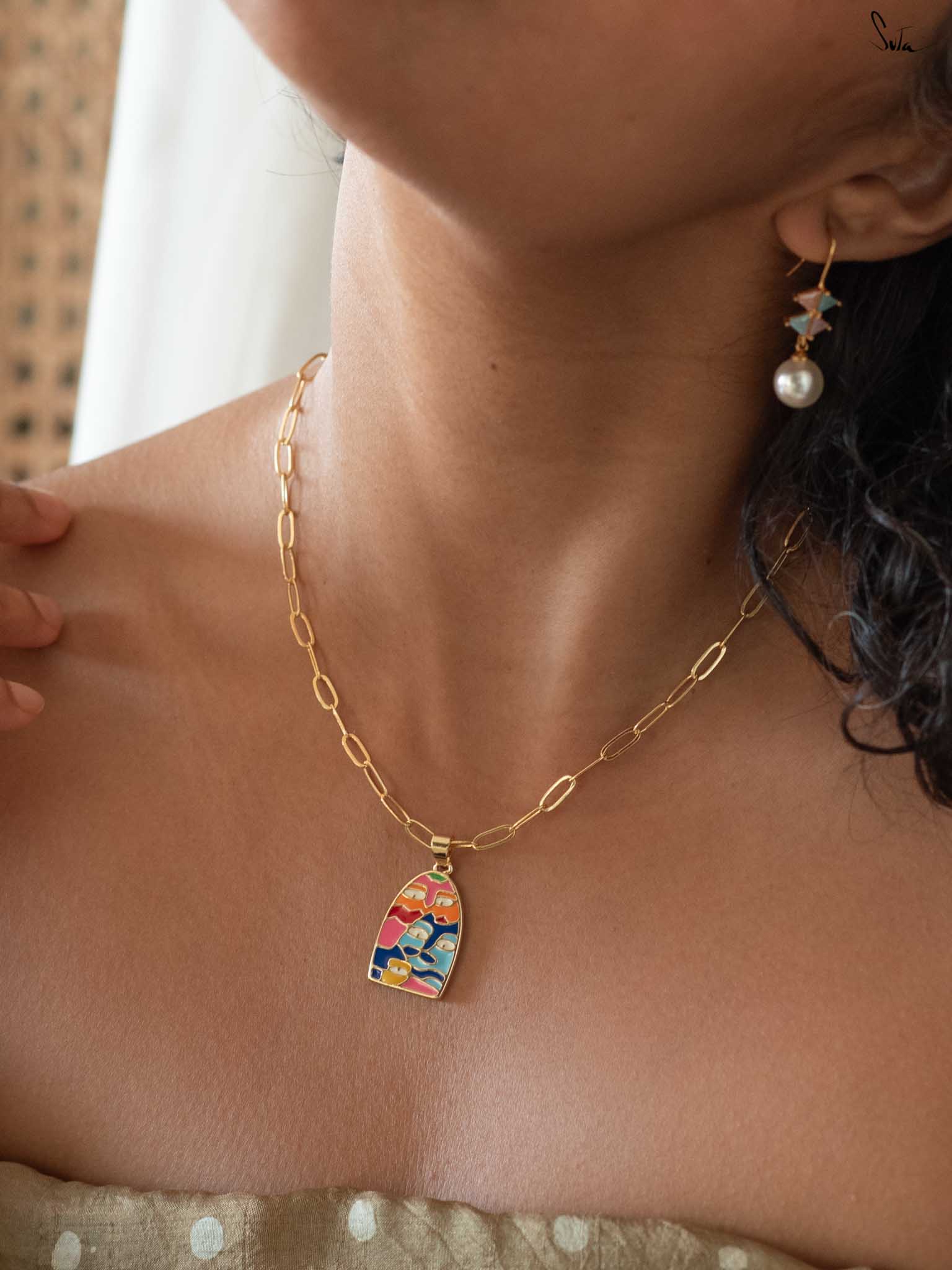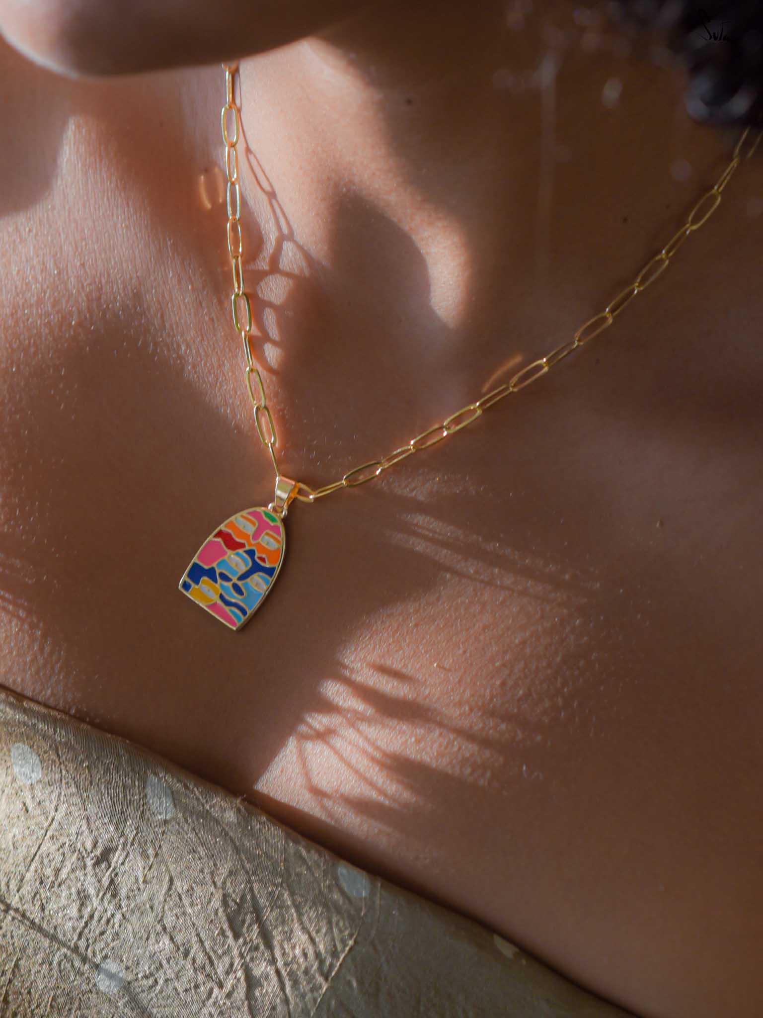 Micro-gold clasp pendant with enamel work in silver-brass alloy. Like wearing an artsy, sassy, and sweet wink. For all day, every day!