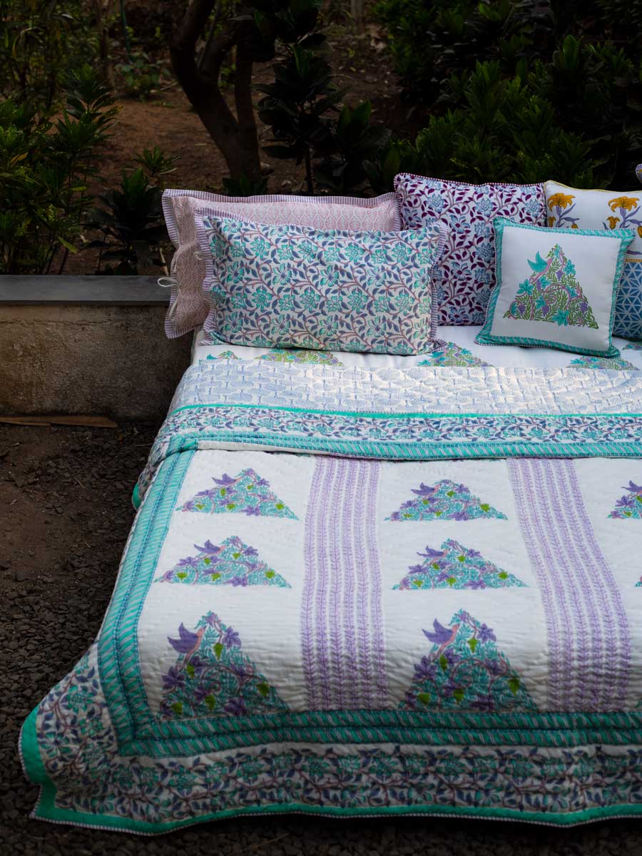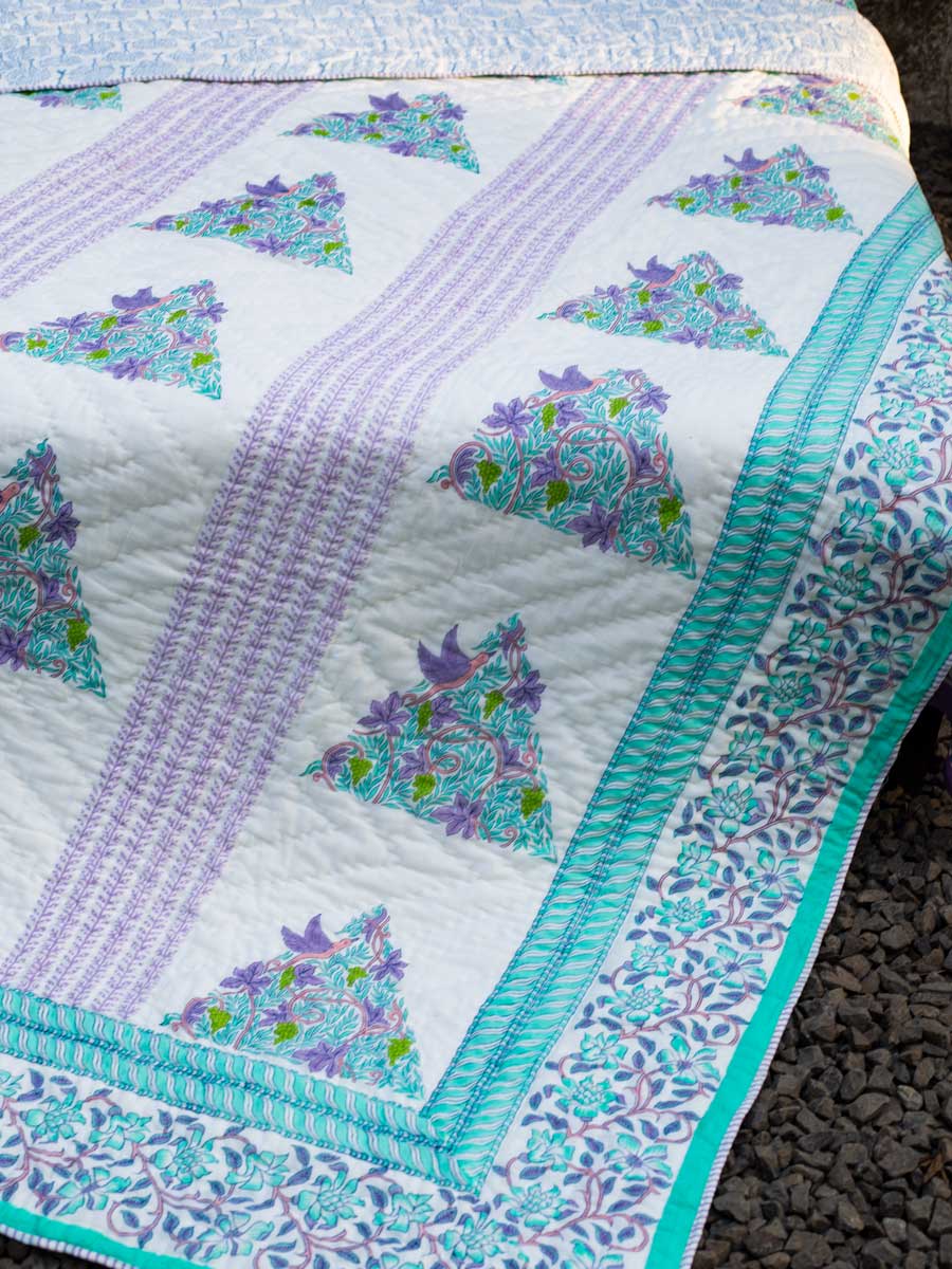 Fields of Lavender Block Printed Cotton Quilt