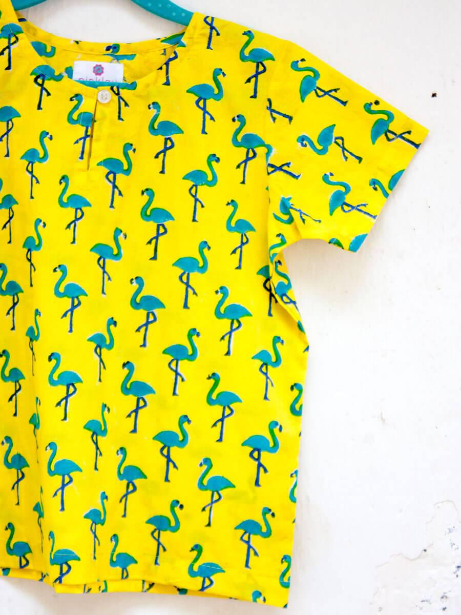 Flamingo Dance Organic Cotton Block Printed Top & Shorts Set