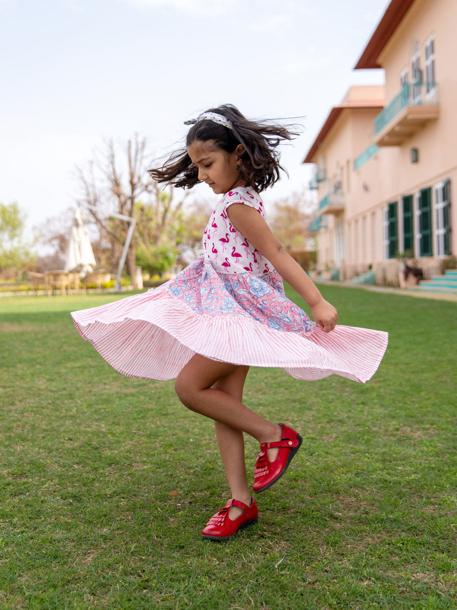 Flamingo Whirl Organic Cotton Block Printed Sleeveless Dress