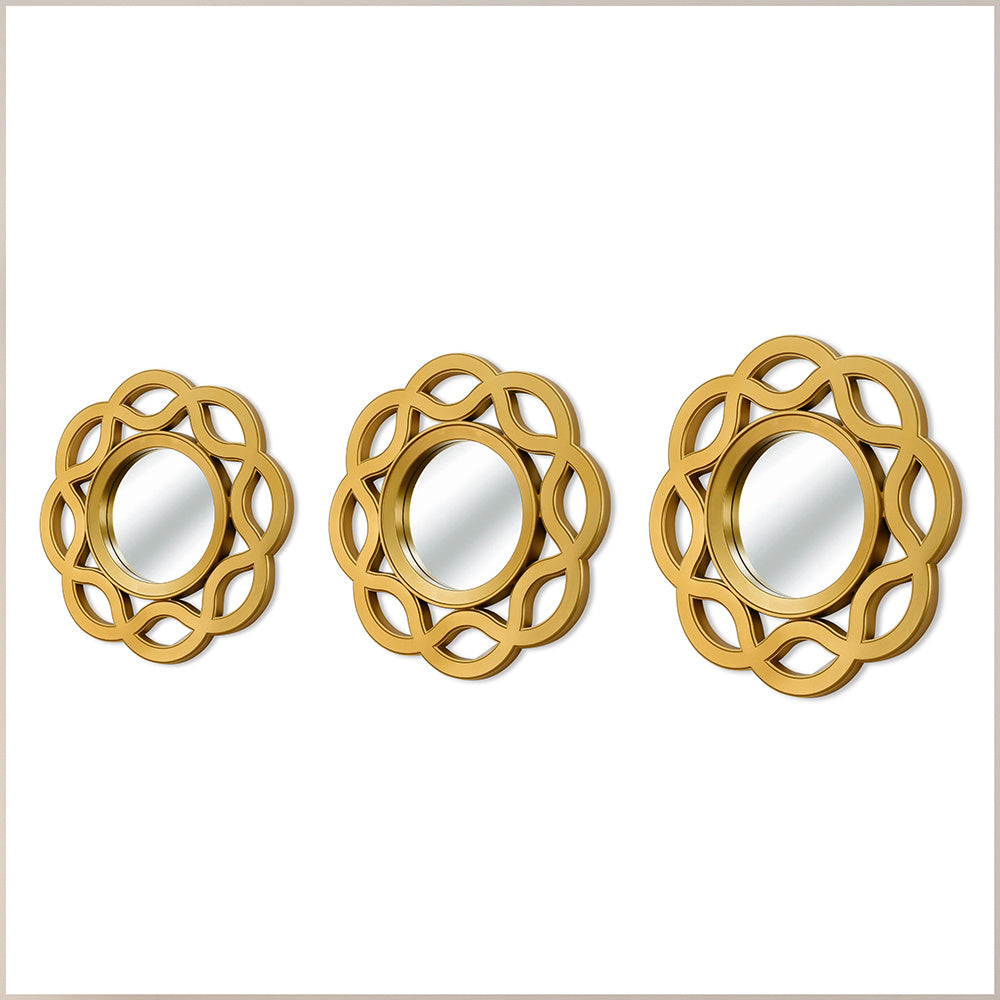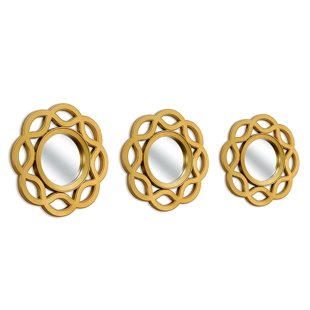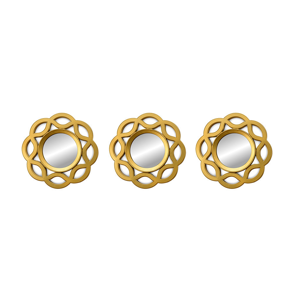 Floral Decorative Wall Mirrors Set of 3 (Gold)