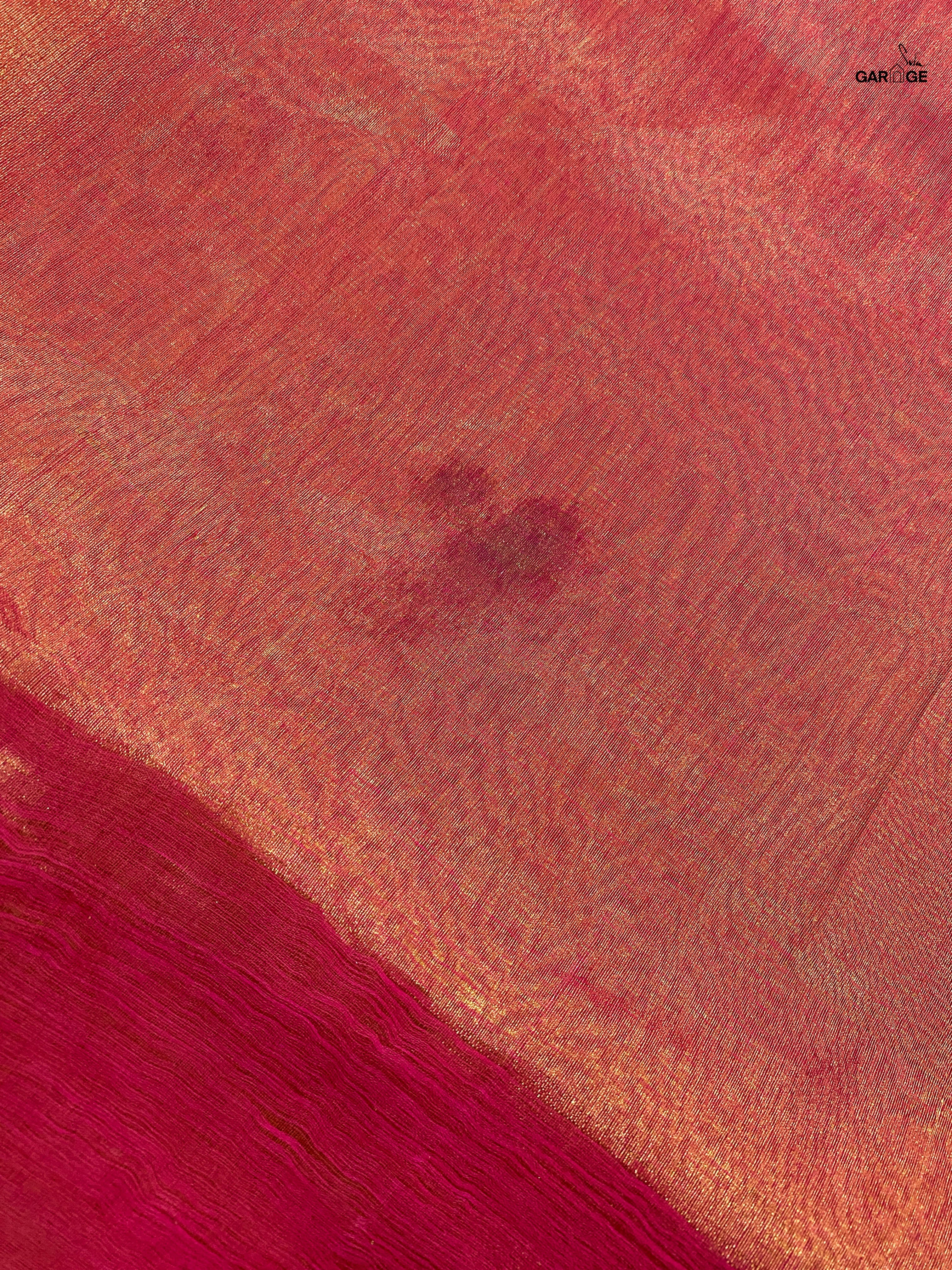 The Chanderi fabric, which combines pure silk on the warp and zari on the weft, radiates light from within and stands out in the most delicate way. The sarees are painstakingly handwoven, with master weavers dedicating a few days to each piece. In fact, the tradition of Chanderi weaving dates back to the 13th century. In the 1350s, Kosthi weavers migrated to Chanderi, a town in Madhya Pradesh, from Jhansi, from where they propagated this weave. It is said that the royals of several dynasties famously favoured Chanderi fabrics for their richness and utility in the searing hot summers of the plains. Suta has further added to the festive allure of the fabric with delicate embroidered lace embellishments.