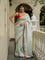 Imagine styling yourself in the mesmerizing Aasmani Mehfil Saree in light blue, crafted with a cotton slub fabric that’s lightweight yet rich. Perfect for celebrations, this festive saree features a red and gold border with intricate zari details and zari stripes throughout the saree.