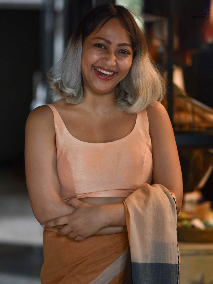 Ta, the model is wearing a size M blouse and the saree is Exuberant-O-Clock