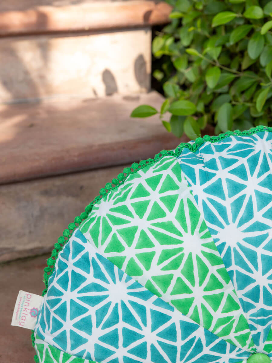 Garima Block Printed Cotton Pinwheel Cushion With Filler - 16 Inch