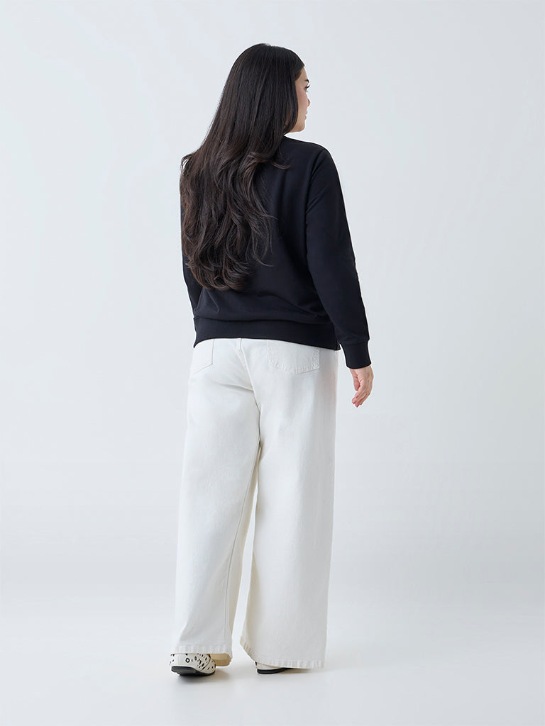 Add a touch of sophistication to your off-duty edit with this black sweatshirt from Gia. Crafted from a cotton-rich fabric, it’s adorned with exquisite floral embroidery and finished with a round neck and full sleeves for a relaxed silhouette.
