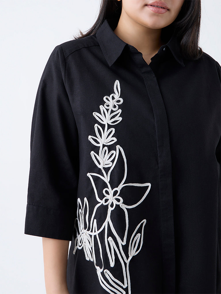 Gia Black Floral Embroidered Linen-Blend Shirt
