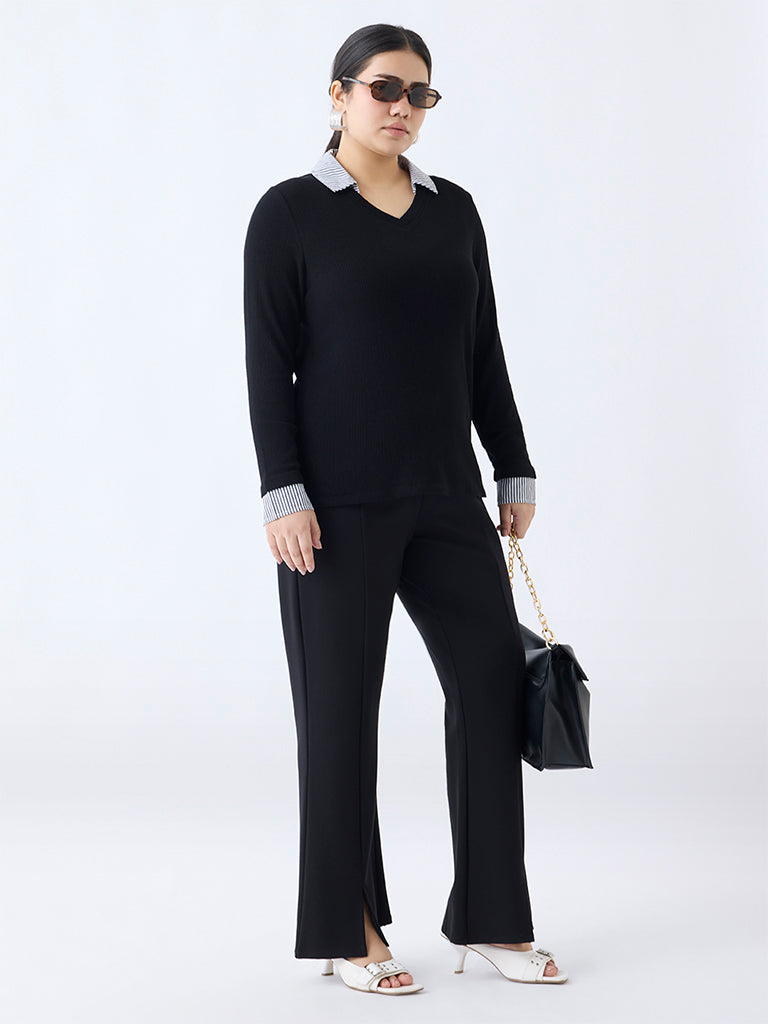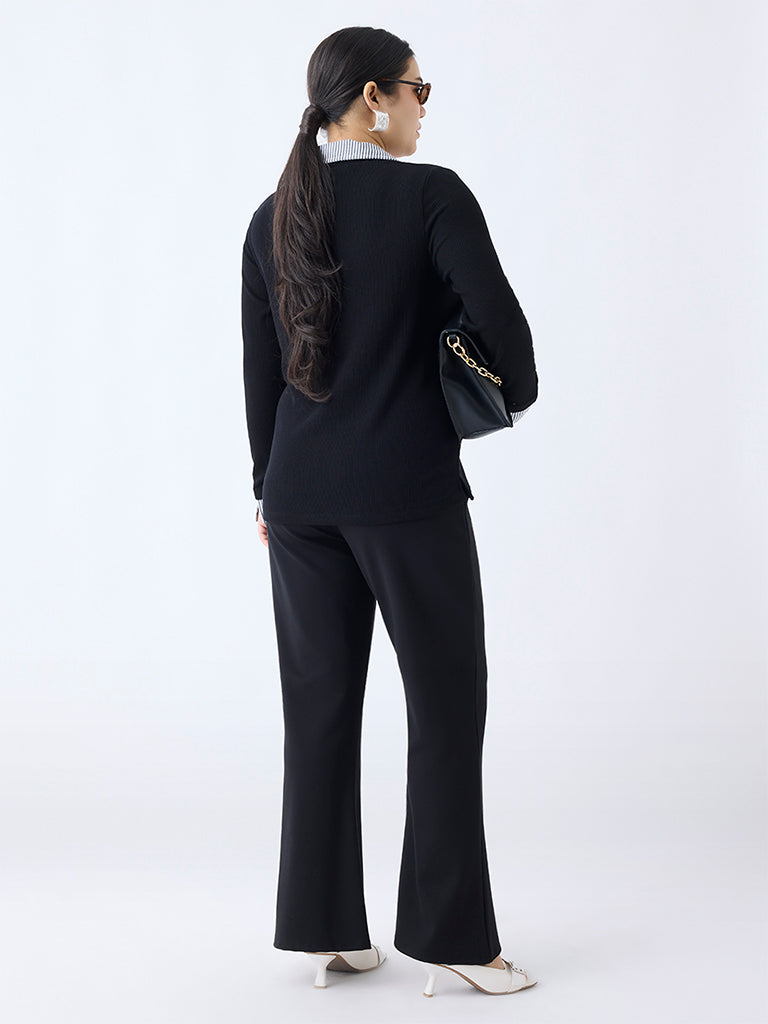 Gia Black Ribbed-Textured T-Shirt