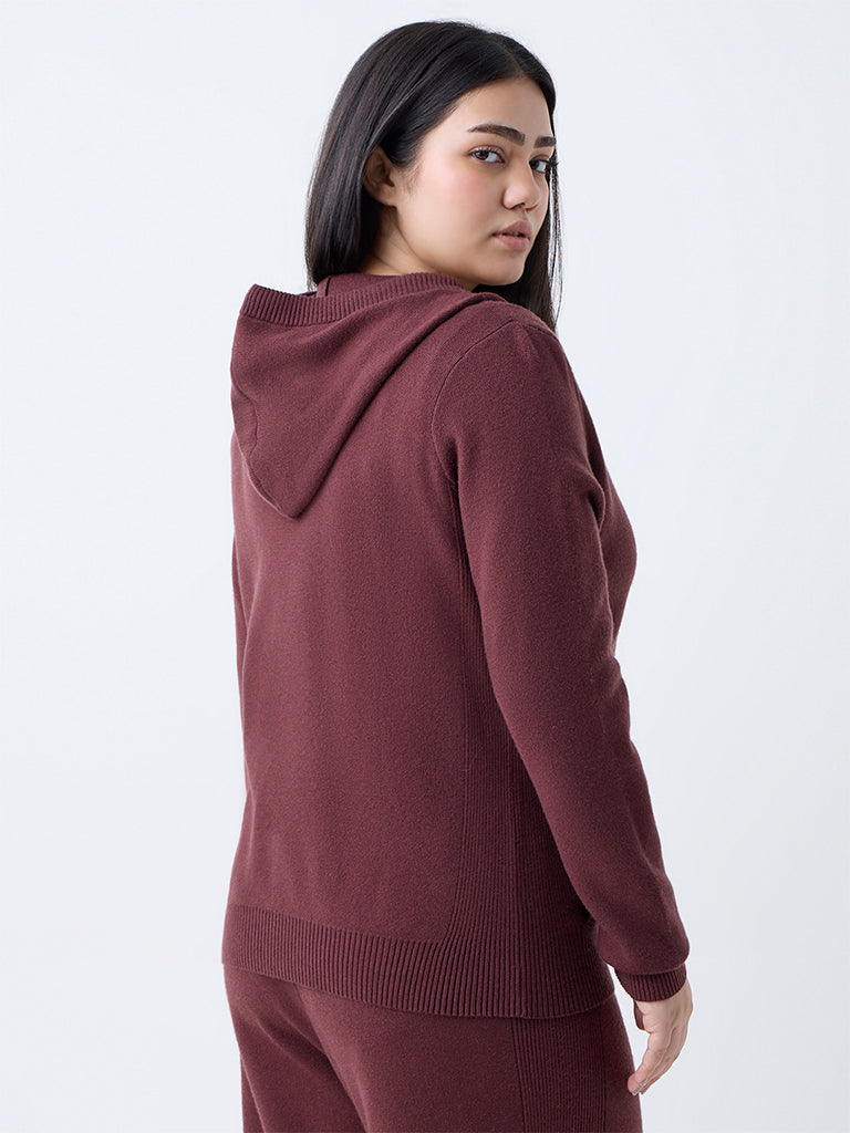 Add a cozy yet stylish layer to your wardrobe with this brown knit-textured jacket from Gia. Designed with a sleek zipper front, it features full sleeves and an attached hood with adjustable drawstrings for versatile styling. Finished with practical side pockets, it offers the perfect blend of comfort and contemporary appeal.
