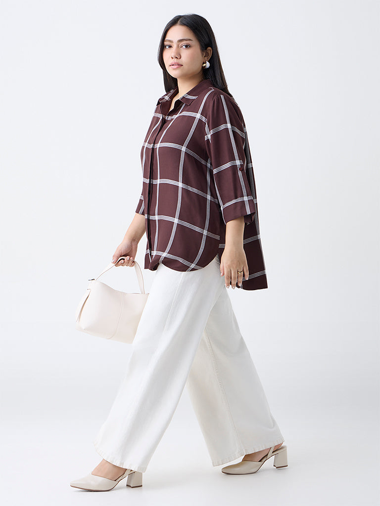 This dark brown shirt from Gia brings a modern touch to patterned dressing. Defined by neat check prints, it is woven from a lightweight fabric that feels airy through the day. The sharp collar, concealed button placket and three-quarter sleeves give it a tailored yet relaxed vibe.