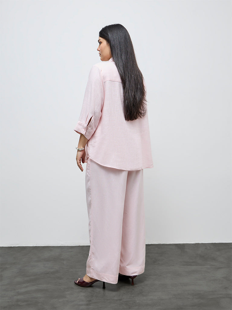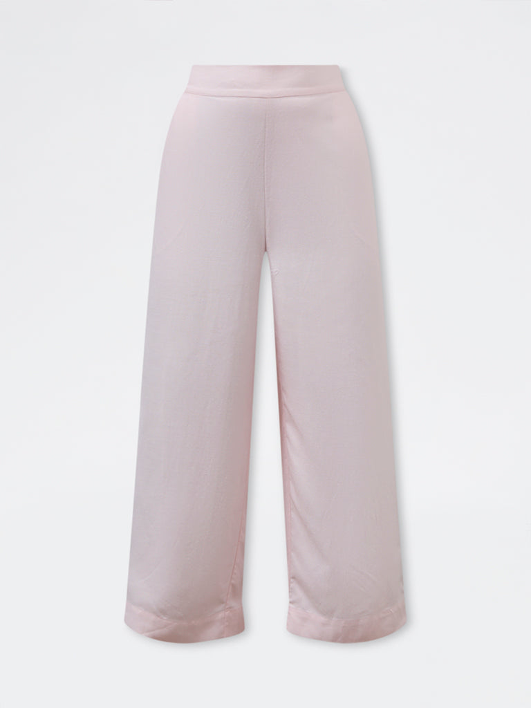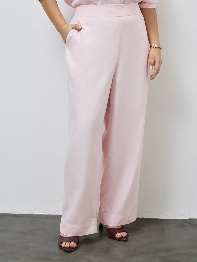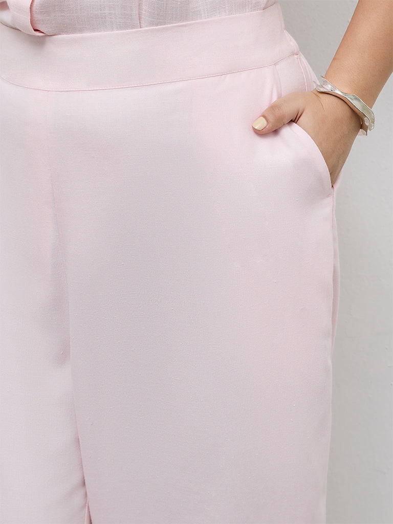 Gia Light Pink Solid High-Rise Cotton-Blend Trousers