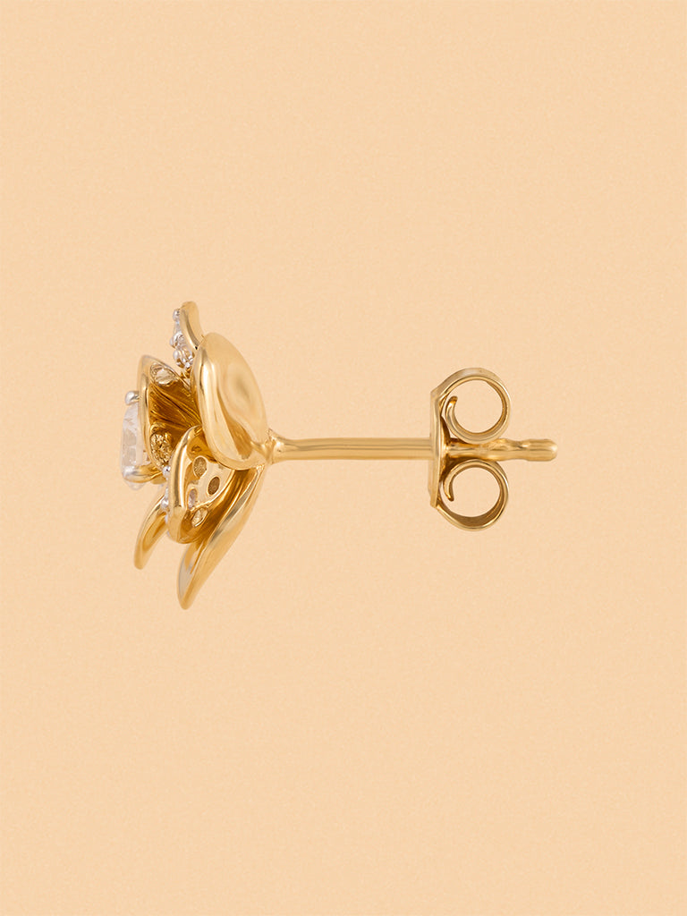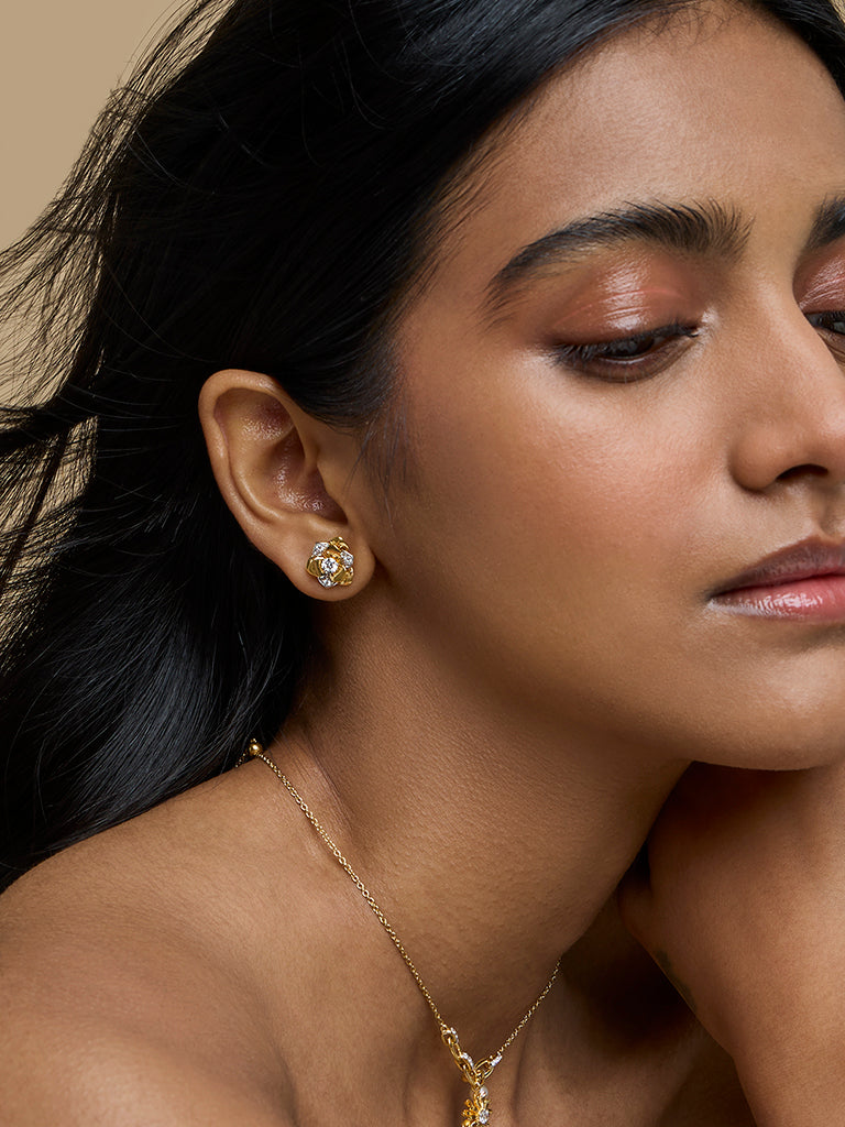 Westside X Pome presents these gold-tone multilayer rose earrings, showcasing an intricately crafted floral design. The delicately layered petals are accented with shimmering clear stones, while the post-back closure ensures a secure and comfortable fit. A sophisticated choice, these earrings add a hint of romantic charm to both special occasions and evening ensembles.
