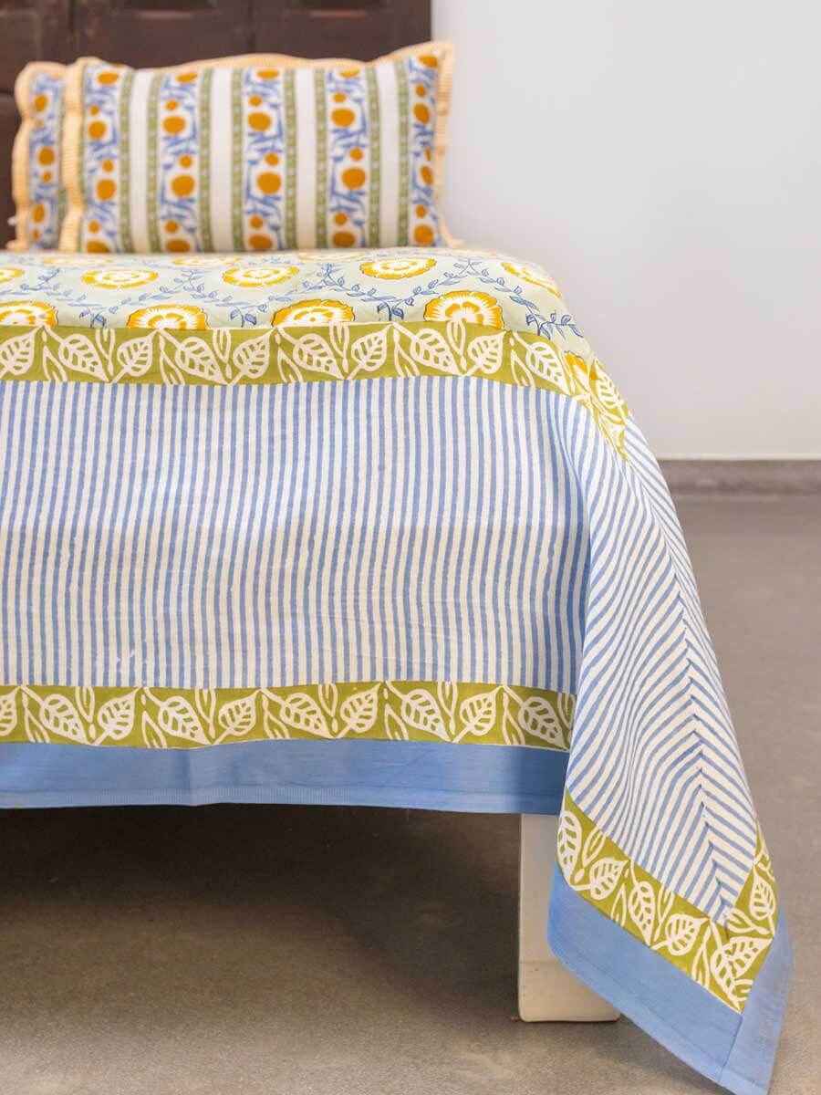 Golden Bloom Hand Block Printed Cotton Bed Sheet