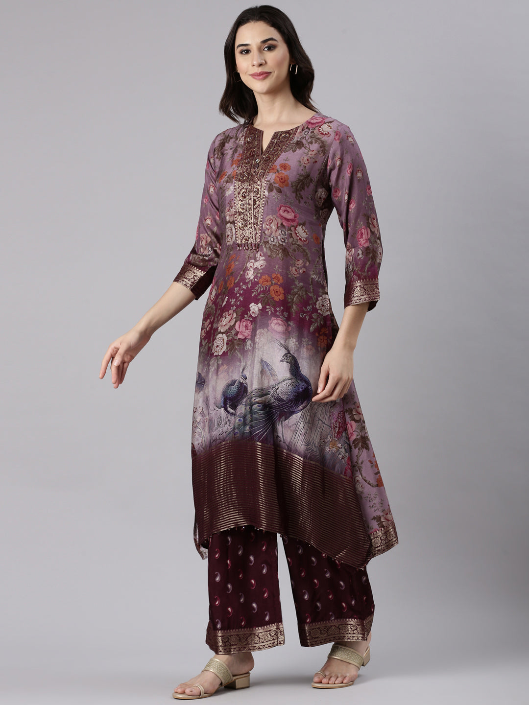 Grape Muslin A Line Cut Three Piece Set