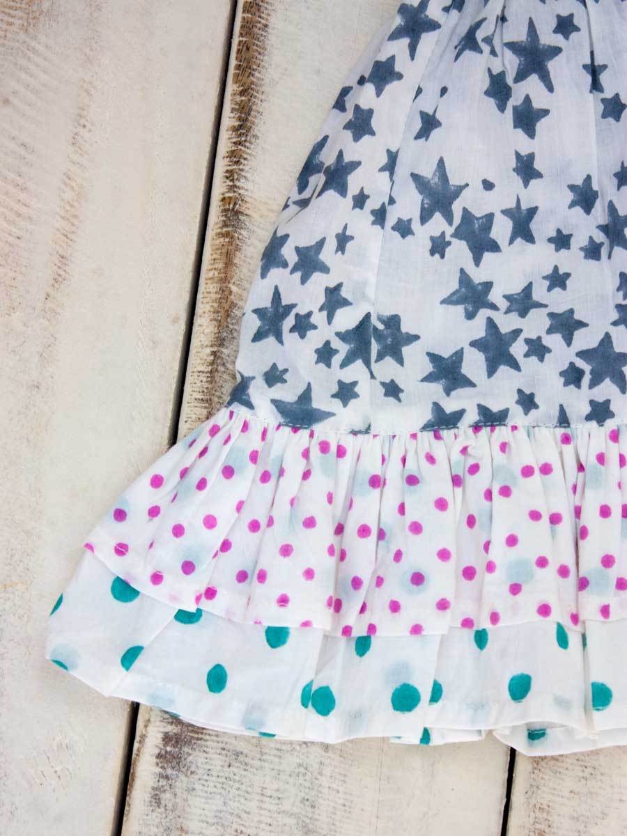 Layered, flowy and fun! Crafted in 100% GOTS Certified Organic Cotton, these hand block print layered short skirts make for a cute addition in your child's wardrobe. Note: While we've classified sizes by age groups, use our Size Chart below to select a best fit.