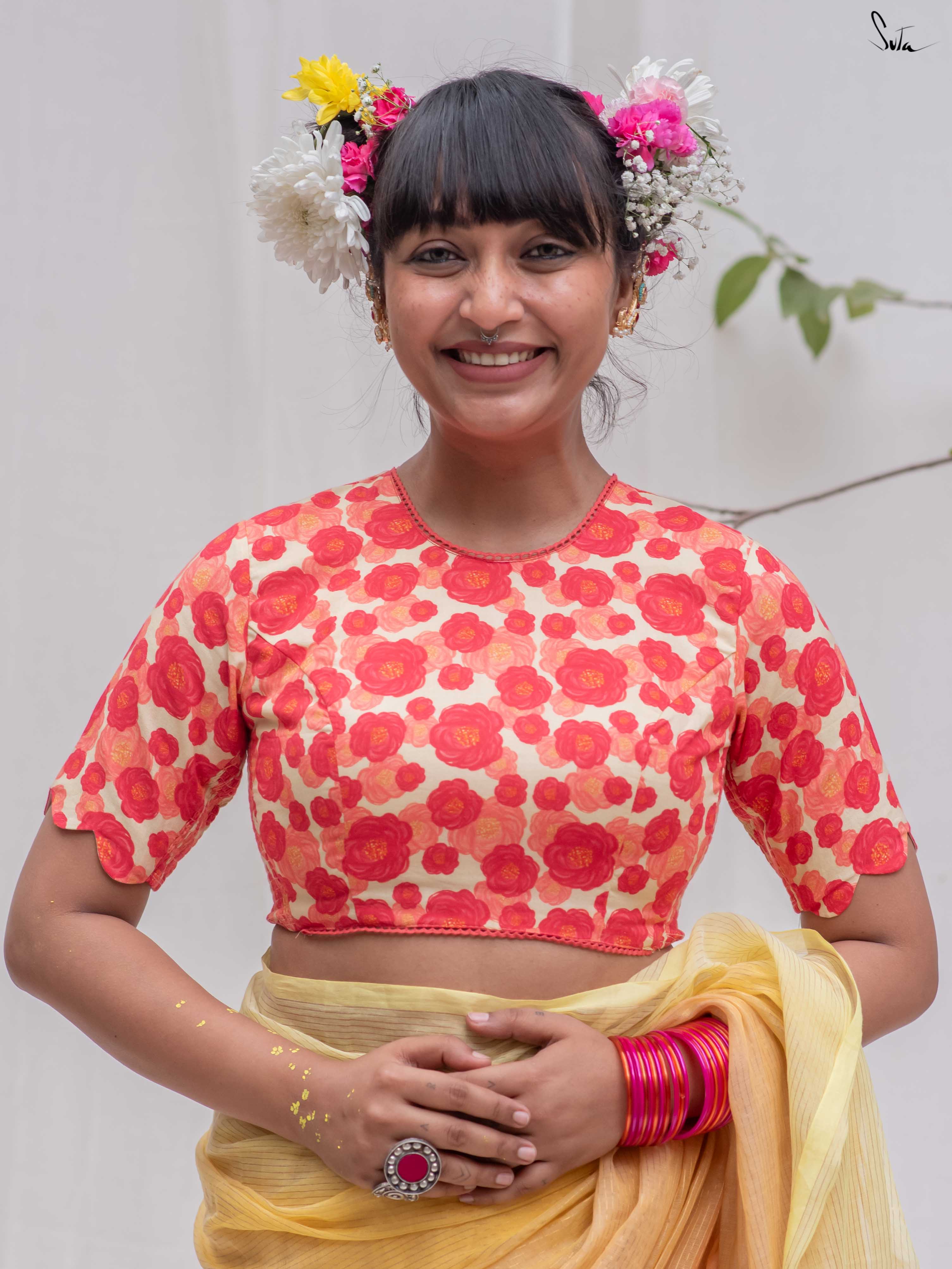 Note: Our blouse comes with an extra margin, allowing you to easily size up for a perfect fit.