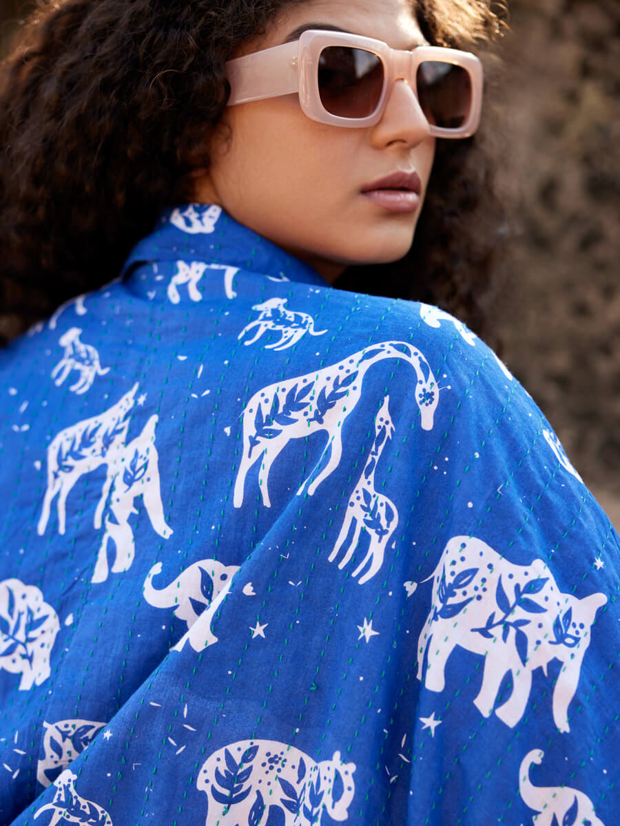 - Craft: Hand printed and kantha embroidered