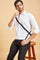 White long-sleeved shirt with Black coloured V-shaped pattern is a perfect blend of Comfort and Style. It can be worn on formal occasions at Parties and Casual outings. It offers all-day Comfort with pure and Breathable Cotton.