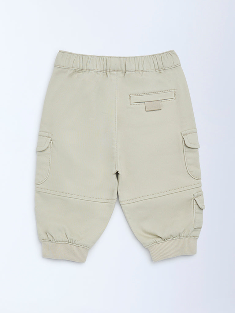 HOP Baby Beige Cargo-Style Mid-Rise Cotton-Blend Joggers