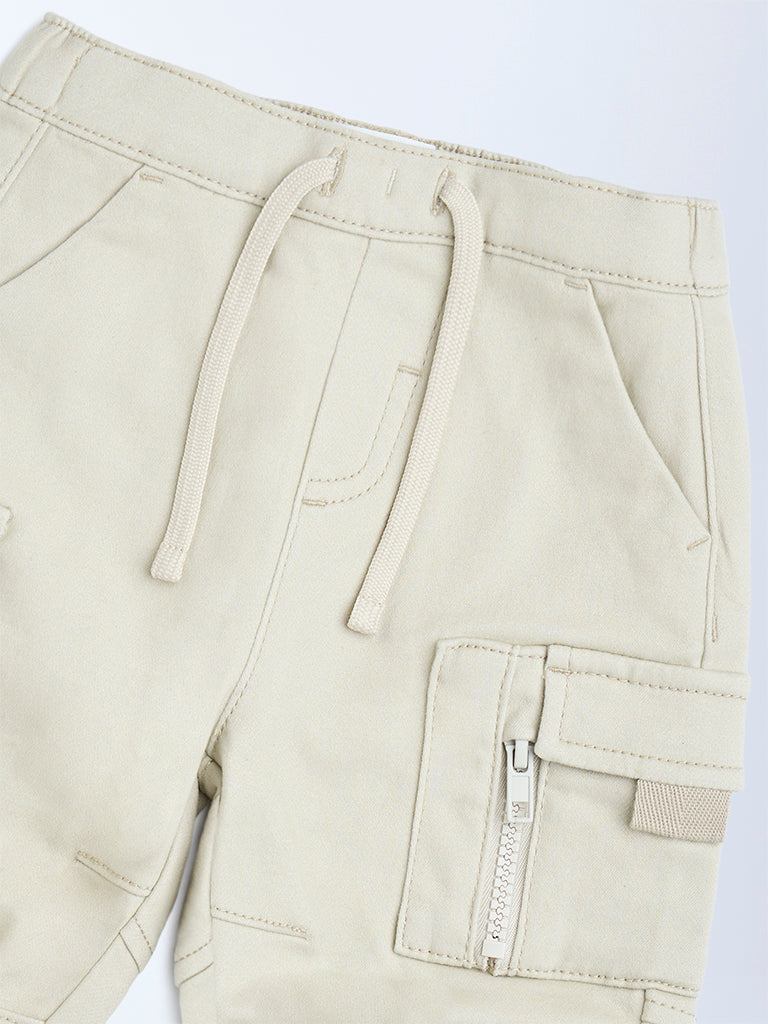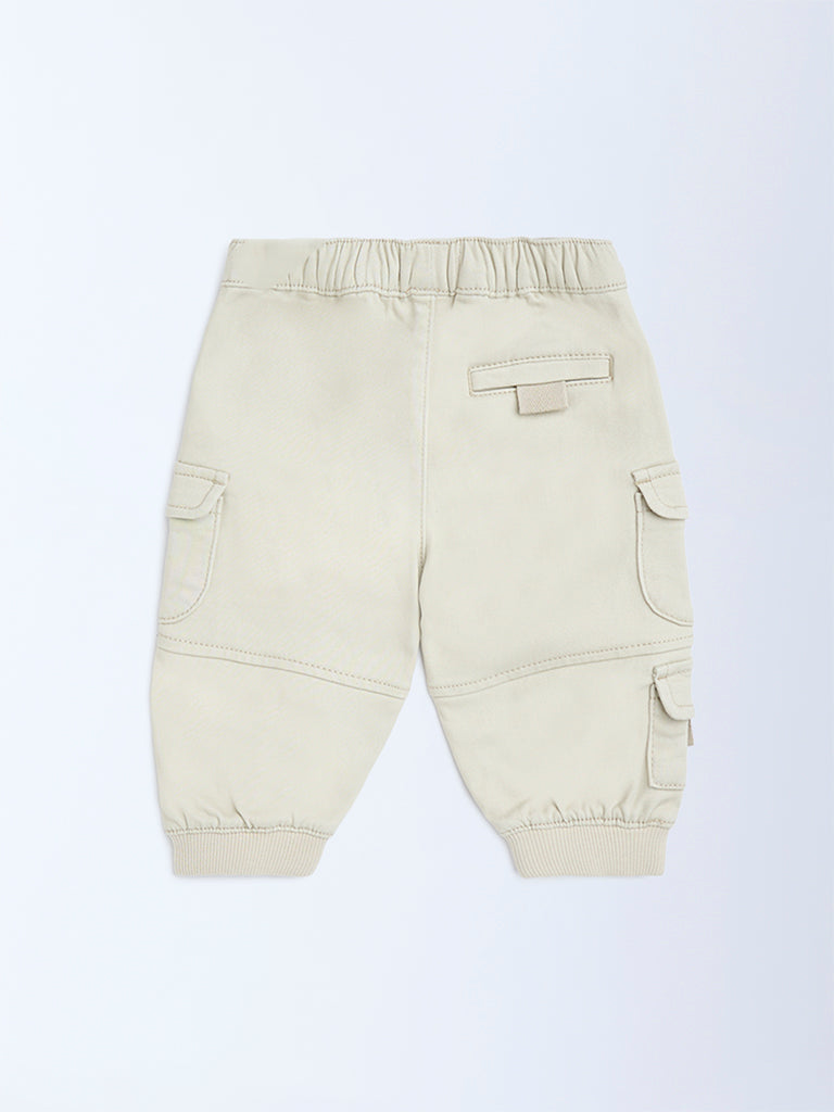 Everyday comfort meets tiny adventure in these beige joggers from HOP Baby. Created from a soft cotton-blend fabric, they feature an elasticated drawstring waistband for a flexible fit. Multiple utility pockets add a practical touch.