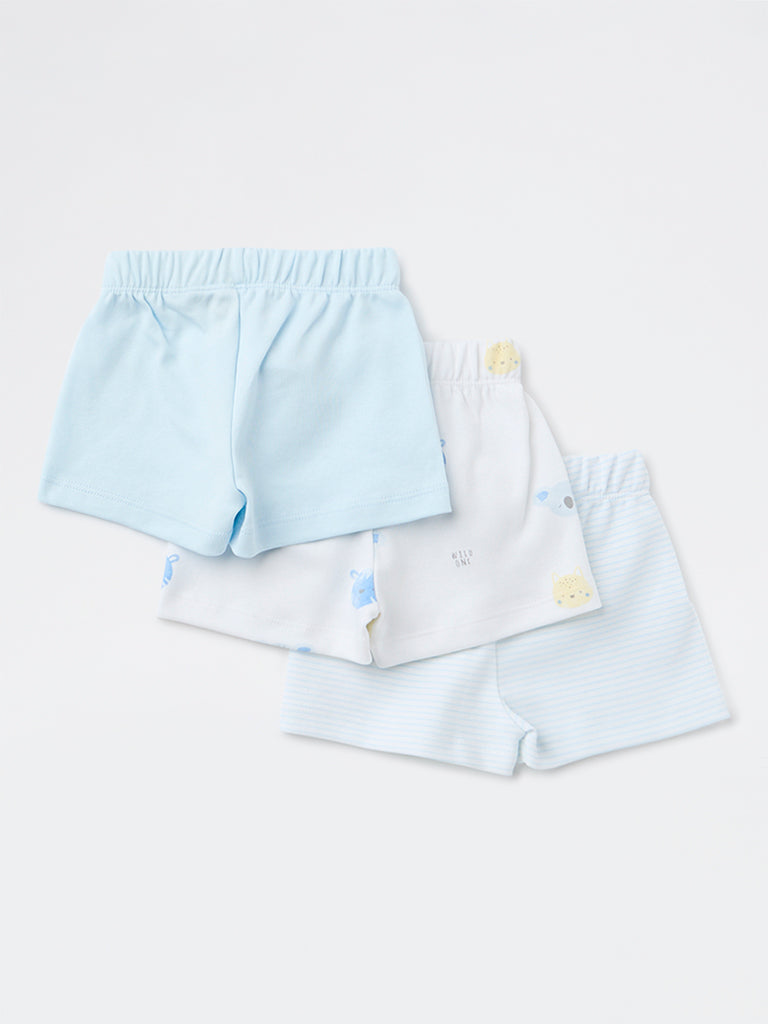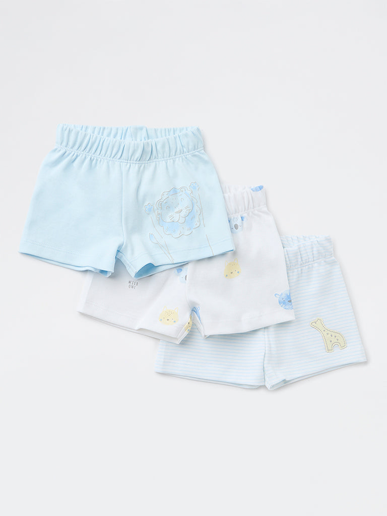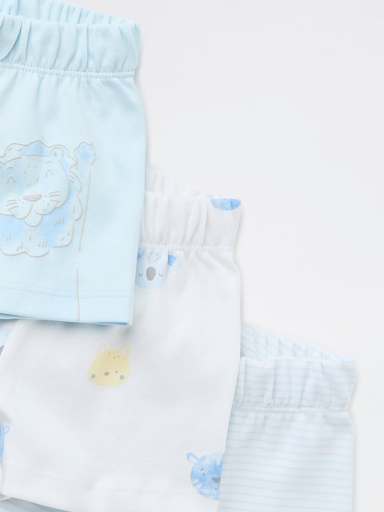 HOP Baby Boys Blue Printed Cotton Shorts - Pack of 3