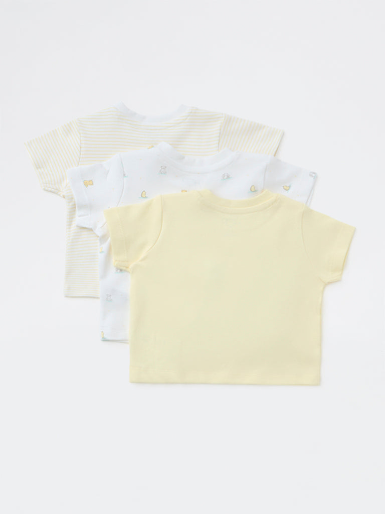 HOP Baby Boys Yellow Printed Cotton T-Shirt - Pack of 3