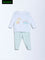 HOP Baby presents a multicolour co-ord set featuring a soft striped t-shirt with adorable dinosaur motifs. Designed with a crew neckline, full sleeves and snap-button shoulders for quick, gentle dressing. Paired with solid mint pants featuring an elasticated waistband for a secure, comfy fit. Crafted from premium pure cotton that keeps your baby warm yet breathable through active play. A snug, easy-moving set ideal for everyday comfort.