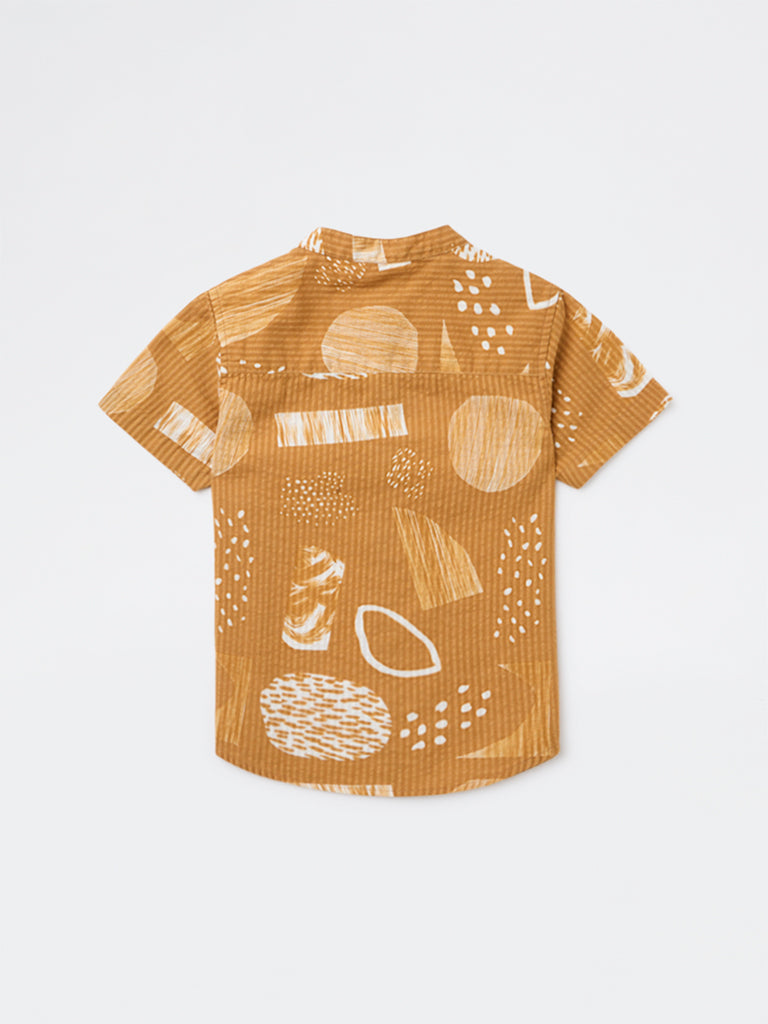 This mustard shirt from HOP Kids is crafted from pure cotton for soft, breathable comfort. Featuring an all-over print with a subtle textured finish, it is styled with a neat band collar, a button-up front and short sleeves.