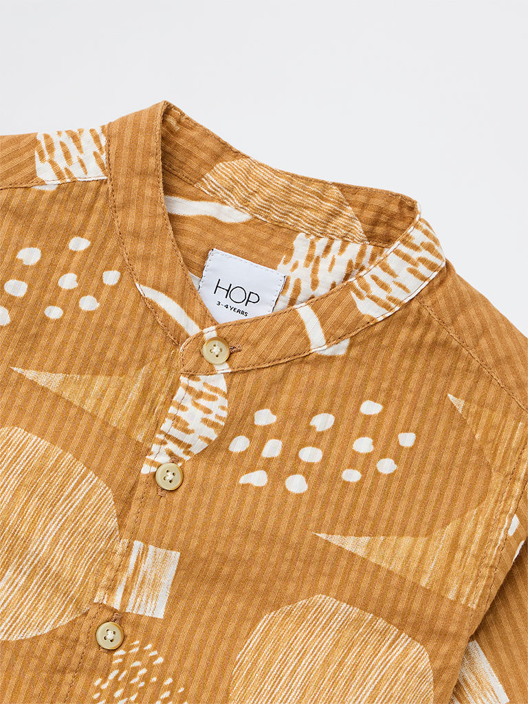 HOP Kids Boys Mustard Printed Cotton Shirt