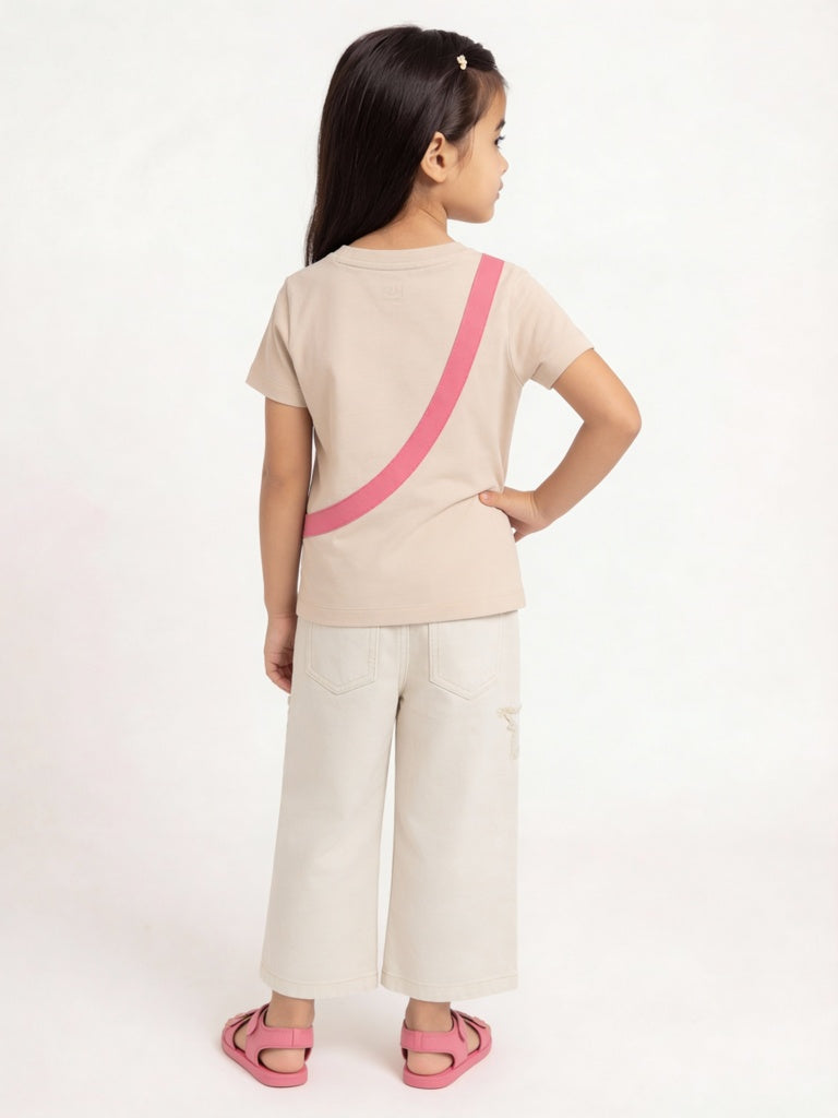 HOP Kids Girls Beige Embroidered Cotton T-Shirt