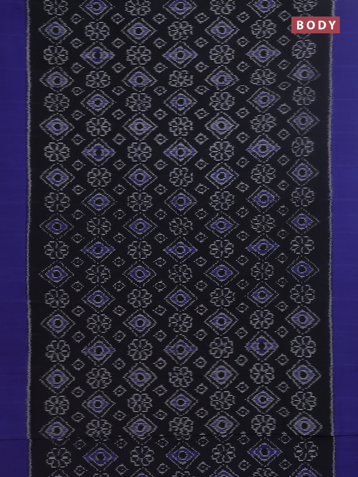 Ikat cotton saree black and blue with allover ikat weaves and simple border