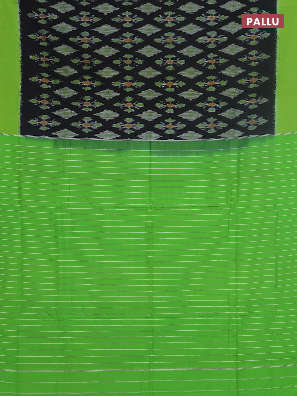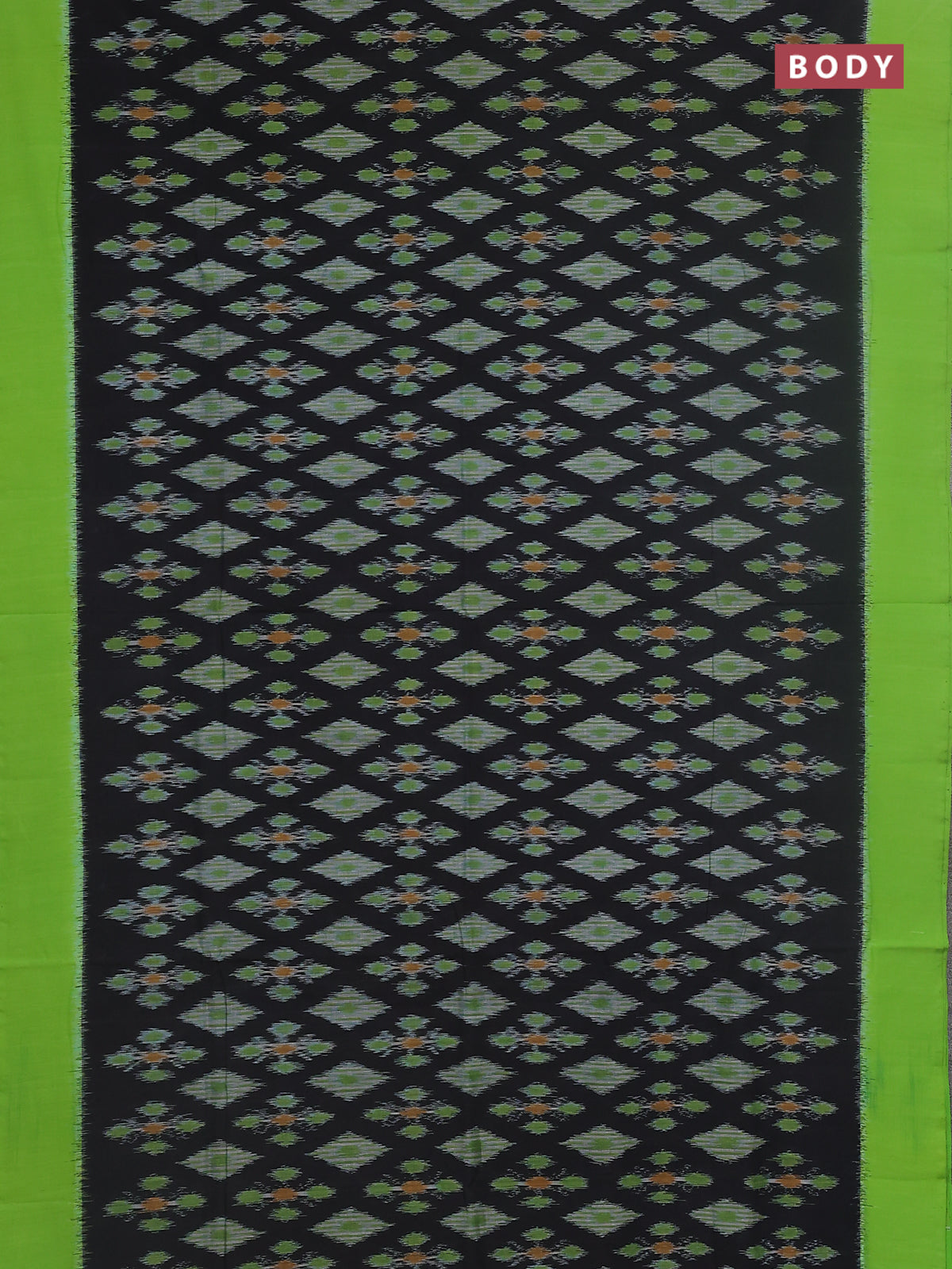 Ikat cotton saree black and green with allover ikat butta weaves and simple border