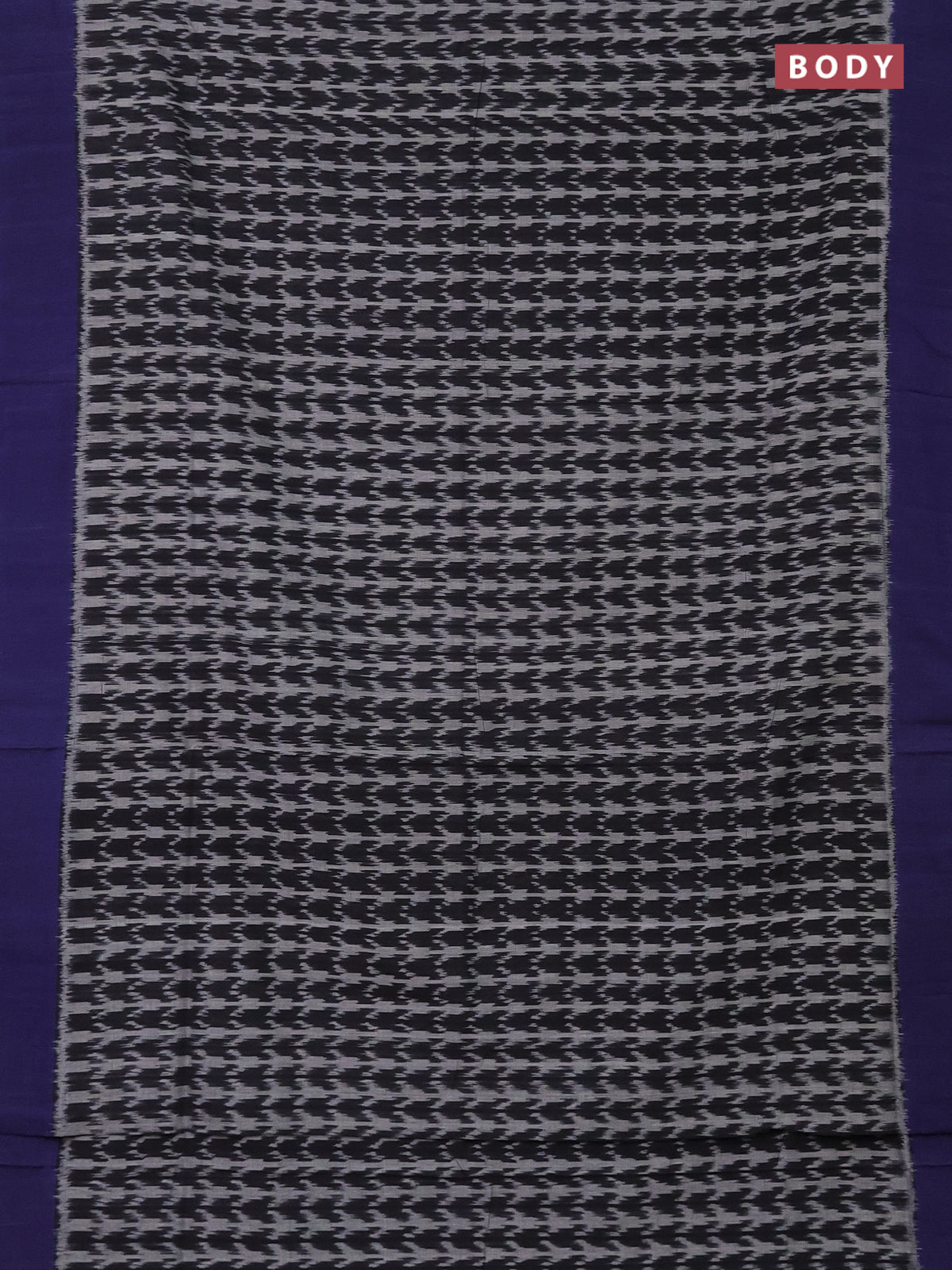 Ikat cotton saree black grey and blue with allover ikat weaves and simple border