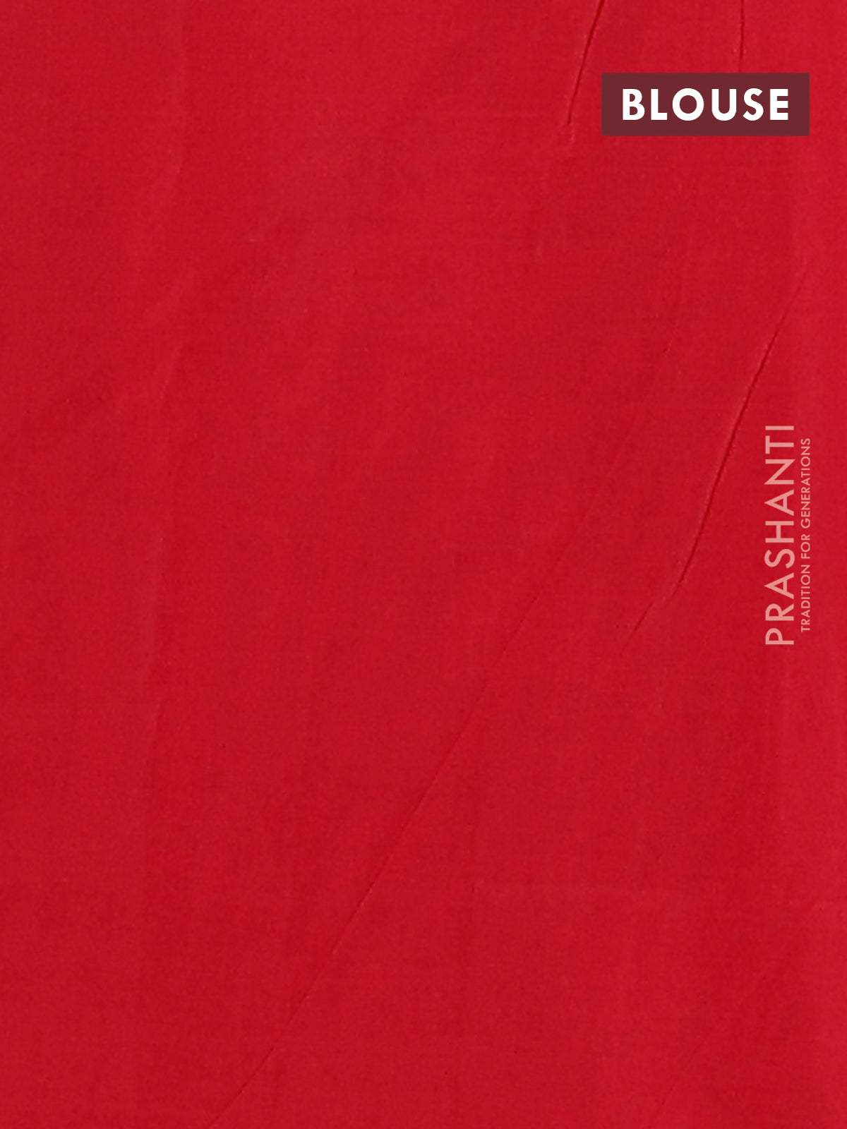 Ikat cotton saree bottel green and red with allover ikat butta weaves and simple border