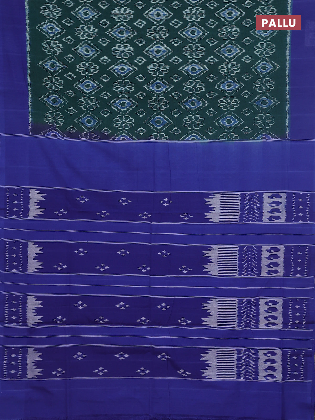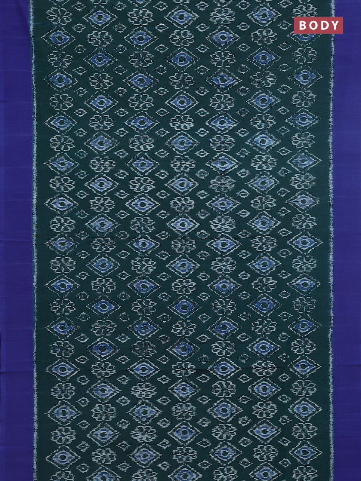 Ikat cotton saree green and blue with allover ikat weaves and simple border