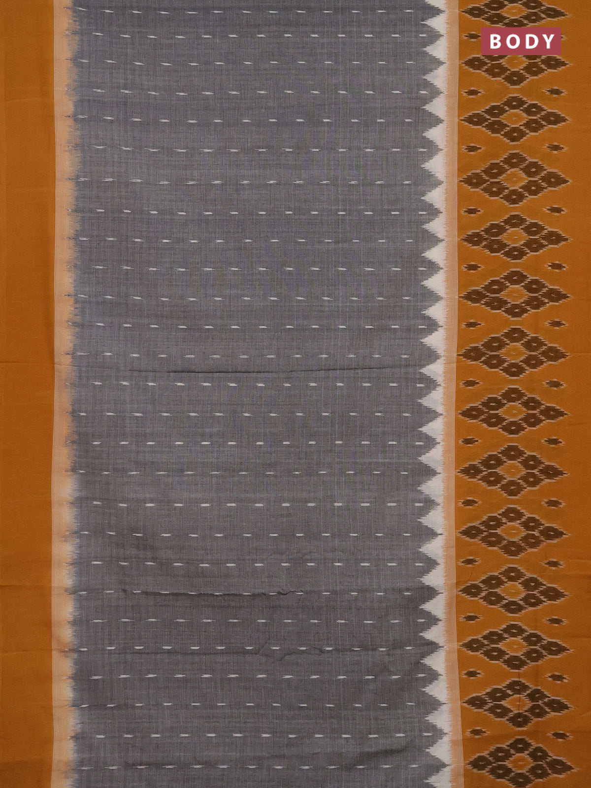 Ikat cotton saree grey and mustard yellow with allover ikat butta weaves and long ikat style border