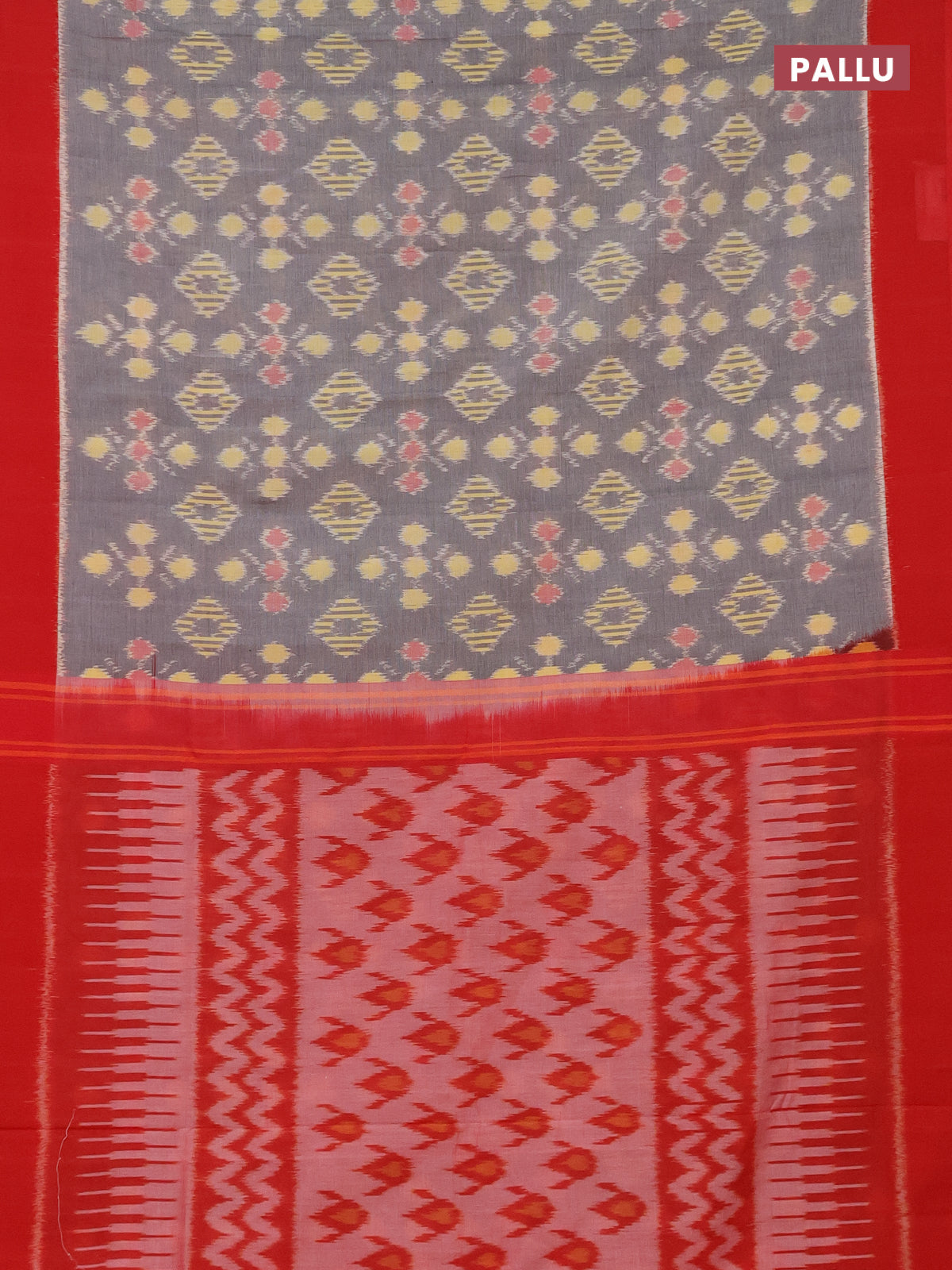Ikat cotton saree grey and red with allover ikat butta weaves and simple border